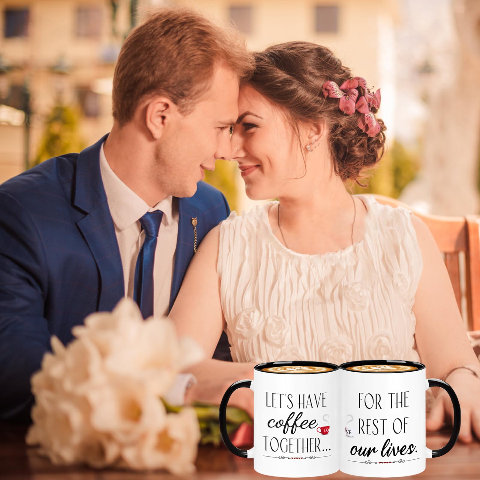 Lot de 2 tasses à café de 325 ml - Cadeau de mariage, de fiançailles pour couple, cadeau d'anniversaire pour couple, cadeau de Mr et Mme - Cadeau de couple - Cadeau de fête prénuptiale pour future mariée Ce service à café peut être utilisé comme cadeau pour les jeunes mariés, les mariés et les mariés, cadeau de Mr & Mrs, cadeau pour mari et femme, cadeau pour les parents, cadeaux pour grands-parents, cadeaux de couples, cadeaux pour petit ami et petite amie, etc. Passe au lave-vaisselle et au micro-ondes pour plus de commodité. Cadeaux de mariage pour couples - Le coffret cadeau de café comprend : 1 tasse Mr de 414 ml (noir), 1 tasse Mrs de 414 ml (blanc), 2 couvercles de tasse, 2 cuillères, 1 carte de vœux rose, 1 boîte cadeau de luxe (intérieur fini en soie Tasses à café personnalisées avec photo : laissez cette tasse personnalisée unique ajouter de l'humour et du romantisme à sa vie. Cliquez simplement sur le... Lot De 2 Tasses à Café Cadeau Pour Mari Et Femme, Cadeau De Mariage, Cadeau De Fête Prénuptiale, Cadeau De Mariage Unique Pour Couple, Cadeau De Mariage Unique Pour Couple Sûr et durable : votre tasse est fabriquée en céramique à haute température, très sûre pour la santé humaine. Soon to be Mr and Mrs Lot de tasses à café pour couples 414 ml Plusieurs scénarios : c'est un cadeau mignon, amusant et pratique adapté pour un couple pour un mariage, une fête prénuptiale, la Saint-Valentin, des fiançailles, un anniversaire, Noël et d'autres occasions spéciales. Cadeau pour couple : design unique des deux côtés, un côté « Lets Have Coffee Together for the Rest of Our Lives », l'autre côté est la serrure d'amour et la clé. Si vous avez des questions, vous pouvez nous contacter et nous vous servirons de tout cœur.
