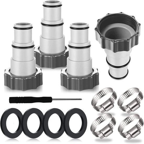 La description:Nom : adaptateur de tuyau. [Caractéristiques ] Convient aux générateurs de chlore et aux systèmes au sel en liaison avec des tuyaux filetés pour la sécurité de la piscine. KATELUO Adaptateur Tuyau Piscine, 2 Pièce Adaptateur Piscine A Adaptateur de piscine de 2 pièces en quantité suffisante pour une utilisation ou un remplacement dans la vie quotidienne. Fabriqué en plastique de haute qualité, résistant à la corrosion, pas facile à déformer ou à casser et durable [Haute qualité] Fabriqué en PVC résistant à la corrosion, il est robuste et durable, idéal pour les kits de piscine. Adaptateur Aspirateur Piscine Intex Lot De 4 Adaptateurs De Tuyau De Piscine, Adaptateur Pour Piscine Intex Adaptateur Intex Matériel: PlastiqueTaille : tuyau : 11 cm x 7 cmCouleur grisEmballage inclus2 x adaptateurs de tuyau2 pinces en acier inoxydable2 * tampon en caoutchouc [Taille] Les raccords de pompe peuvent être utilisés comme alternative aux tuyaux en spirale. [Compatible] Convient à toutes les pompes à filtre Intex 4000, 2500, 2000 et 1500 gpm avec raccords de tuyau filetés. Adaptateur pour tuyau de piscine- Adaptateur de tuyau avec filetage...