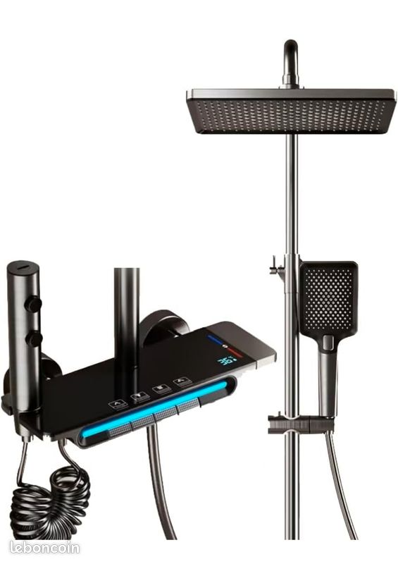 Ensemble de douche avec mitigeur thermostatique, pommeau 1 jet, barre 60cm et flexible - GROHE 34800001 - Economie d'eau - Chromé · Matière : Métal · Convient... ✅【Barre de douche réglable pour toutes les hauteurs】Personnalisez votre espace de douche avec la barre de douche coulissante en acier inoxydable (735-1152 mm). Faites l'expérience d'un contrôle de l'eau conçu avec précision avec notre ensemble de mitigeur de douche thermostatique professionnel. Le rail de montage réglable en hauteur en acier inoxydable (735-1152 mm) s'adapte à tous les membres de la famille, complété par un tuyau de douche anti-chute avec tuyau flexible en acier inoxydable de 1,5 m. ✅【Douche thermostatique intelligente avec verrouillage de sécurité】Profitez d'un contrôle précis de l'eau à 38 °C à portée de main. Le mitigeur de douche thermostatique mural équilibre automatiquement l'eau chaude/froide, tandis que le verrou de sécurité empêche la surchauffe accidentelle. Le mécanisme anti-chute permet un réglage en douceur de la hauteur, ce qui le rend idéal pour les enfants, les adultes ou les utilisateurs de fauteuil roulant dans les installations de salle de bain modernes. Barre de douche : acier inoxydable. 1 tuyau en acier inoxydable de 1,5 m. 1 support de montage mural. Conçu dans un souci de durabilité, le corps du mélangeur en laiton massif avec revêtement PVD résiste à la corrosion, associé à une tête de pluie en acier inoxydable de 20 cm avec buses en silicone autonettoyantes. La surface froide au toucher de la douche noire reste sûre même lors d'une utilisation à haute température. 1 support de douche coulissant. Pression de l'eau : 0,05-0,5 MPa. Barre de douche; Douchette à main; Tuyau de raccordement; Raccords et fixations; - Instructions en allemand et en anglais; Accessoires supplémentaires selon le... Idéal pour les styles de salle de bain modernes et industriels. Connexions G1/2 standard britanniques. Finition : triple couche chromée. ✔️ Contrôle double fonction (séparation du débit/de la température). 1 pommeau de douche effet pluie de 20 cm., 1 douchette en ABS. Le rail de douche noir satiné et le corps de la vanne thermostatique conservent un aspect anti-rayures même dans les zones d'eau dure. Double expérience de pommeau de douche à effet pluie : passez sans effort du pommeau de douche à effet pluie en acier inoxydable de 20 cm à la douchette à main. Installation : fixation murale (centres 150 ± 10 mm). Tête de pluie : 200 × 200 mm (acier inoxydable 304). Poe de douche à effet pluie, 30,5 c carré à angles réglables Meuble De Douche Thermostatique Ensemble De Robinet De Douche Thermostatique Noir, Pomme De Douche à Effet Pluie En Acier Inoxydable Avec Douchette à Main, Système De Douche Mural, Mitigeur De Douche De Bain, 40,6 Cm A Encastrer Contenu du paquet : 1 mitigeur thermostatique.