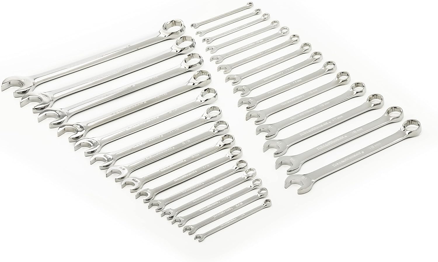 Comprend 2 supports compacts résistants aux solvants avec emplacement clé pour le rangement et l'organisation Les clés sont fabriquées en alliage d'acier robuste avec une finition chromée brillante et polie. Tailles incluses : 11/32, 5/16, 3/8, 7/16, 1/2, 9/16, 5/8, 11/16, 3/4, 13/16, 7/8, 15/16, 1, 8 mm, 9 mm, 10 mm, 11 mm, 12 mm, 13 mm, 14 mm, 15 mm, 16 mm, 17 mm, 18 mm, 18 mm., 9 mm Finition chromée brillante, facile à nettoyer et résistante à la corrosion GEARWRENCH 25 Piece 12 Point Flex Head Ratcheting Combination SAE 30° pour les clés standard La tête et le faisceau fins offrent un plus grand accès dans les espaces de travail confinés Le design de chargement hors coin à l'extrémité de la boîte offre une meilleure prise en main et réduit l'arrondissement de la fixation L'extrémité de la boîte à cliquet à 72 dents nécessite un minimum de 5° pour déplacer les fixations vs. Tête flexible permettant d'accéder aux boulons et fixations difficiles d'accès Les clés sont fabriquées en alliage d'acier robuste avec une finition chromée brillante et polie. L'extrémité de la boîte à cliquet dispose d'un chargement hors coin pour une meilleure prise sur la fixation et réduit l'arrondi de la fixation L'extrémité de la boîte à cliquet dispose d'un chargement hors coin pour une meilleure prise sur la fixation et réduit l'arrondi de la fixation.