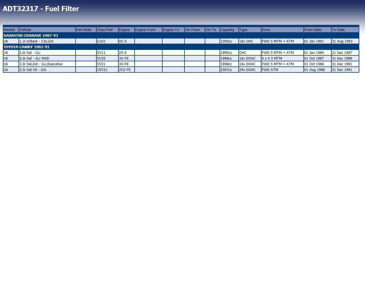 Toyota Camry A trois volumes 2., 0 Gli 16V (1986 - 1993) 89kW Type de filtre: Filtre de conduite Filtre à carburant C869 PURFLUX Cartouche filtrante PURFLUX C869 pas Cet objet n'est plus disponible. ; Terminé ; 31,54 €31,54 € ; mer. 24 sept., 08:15mer. 24 sept., 08:15 BA FB-24; WILMINK GROUP WG1747604; PZL SEDZISZOW FPW18; KAGER 11-0101; KAGER 11-0227; PATRON PF3091; LYNXauto LF-U01; STELLOX 21-00580-SX; QH Talbros WF8092; QH Talbros WF8120; SAKURA Automotive FS-1108; SAKURA Automotive FS-11750; SAKURA Automotive FS-1106; ZEKKERT KF-5124; UNIFLUX FILTERS XB29; FIL FILTER ZP 8052 FM; DENCKERMANN A110026; DENCKERMANN A110460; MULLER FILTER FB348; DENCKERMANN A110025; DENCKERMANN A110067; MULLER FILTER FB345; DENCKERMANN A110294; DENCKERMANN A110538; GOODWILL FG 528; SCT Germany ST 762; NPS H133I04; MAPCO 62516; FILTRON PP931; FILTRON PP927; ALCO FILTER SP2069; ALCO FILTER SP-2032; QUINTON HAZELL QFF0095; QUINTON HAZELL QFF0338; NIPPARTS J1332024; MOTAQUIP VFF193; MOTAQUIP VFF160; CoopersFiaam FT5301; PARTS-MALL PCF-068-S; JC PREMIUM B33039PR; PARTS-MALL PCF-044-S; PARTS-MALL PCF-068; PARTS-MALL PCF-044; JC PREMIUM B32024PR; KNECHT KL 129; PURFLUX EP187A; HENGST FILTER H314WK; UFI 31., 523., 00; HERTH+BUSS JAKOPARTS J1332024; BOSCH 0 450 905 955; BOSCH 0 986 450 103; MEAT & DORIA 4044; DYNAMATRIX DFFL129; ELTA AUTOMOTIVE DSB432C; JAPKO 30224; SpeedMate SM-FFH047; PEMEBLA JAPFC-224S; MANN-FILTER WK 614/24 x; MANN-FILTER WK 614/27; JAPANPARTS FC-224S; ASHUKI D176-01; ASHUKI C215-01; ASHUKI T100-11; ASHUKI T103-35; ASHUKI 0399-3206; IPS Parts IFG-3224 Filtro De Combustivel BLUEPRINT ADT32317 Toyota Camry A trois volumes 2., 0 (1983 - 1988) 73kW Numéros de pièce fabricant équivalents :DAIHATSU 23300-87729; TOYOTA 23030-79025; TOYOTA 23030-74020; TOYOTA 23030-74010; TOYOTA 23030-79015; LEXUS 23030-79025; COMLINE CTY13036; COMLINE CTY13042; KAISHIN FC178; KAISHIN FC1055; DIAMAX DF3130; DIAMAX DF3127; JS ASAKASHI FS6202U; JS ASAKASHI FS6002U; MAGNETI MARELLI 154096314820; MAGNETI MARELLI 213908905500; FRAM G6465; FRAM G8164; MAGNETI MARELLI 161013320240; MAGNETI MARELLI 600000035210; CLEAN FILTERS MBNA055; SOFIMA S 1523 B; SOFIMA S 1554 B; CLEAN FILTERS MBNA972; CHAMPION CFF100572; CHAMPION L572/606; MAHLE ORIGINAL KL 129; ASHIKA 30-02-224; HOFFER 4044; MDR MFF-3224; WIX FILTERS WF8120; WIX FILTERS WF8116; AMC Filter TF-1567; AMC Filter DF-7862; MEYLE 28-14 323 0002; 1A FIRST AUTOMOTIVE P10348; 1A FIRST AUTOMOTIVE P10345; FI. Cette liste est un échantillon de toutes les voitures compatibles avec cette pièce auto. BLUE PRINT ADT32317 Filtre à carburant Filtre de conduite, avec joints · Type de filtre: Filtre de conduite · Hauteur [mm]: 116 · Diamètre [mm]: 72 · Article...