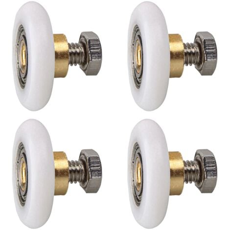Cuivre d'excellente qualité. Diamètre de la roue : 25 mm avec inserts pour s'adapter à un trou de verre de 16 mm. Expédition rapide généralement le jour même. Roues résistantes à l'usure et glissantes silencieuses.pour la plupart des parois de douche, cabines de douche et cabines de vapeur.Roulettes coulissantes et faciles à nettoyer. Le lot de roulettes pour porte de douche comprend 4 roulettes supérieures et 4 roulettes inférieures.Conçu pour une utilisation sur des portes en verre de 5 mm ou 6 mm Ces rouleaux de porte de douche s'adaptent aux portes de douche en verre. Roulettes Cabine De Douche Linwnil 8 Roulettes De Rechange Pour Porte Coulissante De Douche, Diamètre De 25 Mm, Avec Vis M5 (101 M5 25mm 8 Roulette Cabine De Douche Livré avec 8pièces de vis. EN STOCK : 8 galets de porte de douche de 25 mm., MAZSCPBCJ-231211-40 pas cher Roulette Douche Smooth Lot De 8 Roulettes Pour Porte De Douche (20-27 Mm) Gris Roulettes Pivotantes Hauteur réglable de 25 m x 6 mm, roues adaptées à de nombreuses marques. Galets Nylon 21mm Lot 4 Roues Porte Coulissante Nylon 21mm - Pour Porte Douche/Serre - Avec Boulons Rouleaux Porte Serre Matériau : cuivre métallique Utilise des billes en acier inoxydable de qualité 304., Tige en laiton de 6 mm avec trous décalés à travers les écrous et les rondelles pour permettre le réglage de la hauteur conçu pour s'adapter au trou de verre de 16 mm. Lot de 8, convient à de nombreuses marques différentes