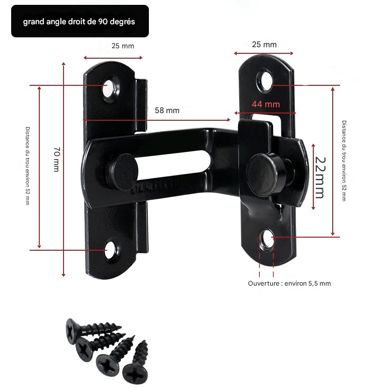 Fermeture sécurisée pour diverses applications : le paquet contient 4 pièces de raccords de verrouillage spécialement conçus pour être un modèle de crochet compact (201) et livrés avec un jeu de vis pour une installation facile. Cette fonction est particulièrement importante pour ceux qui ont besoin de sécuriser des outils ou des appareils précieux. 90 Degrés Acier Inoxydable Verrouillage Métallique Avec Clé Pour Portes DINGCHI Verrouillage lourd pour cadenas, Verrou de porte, 90 degrés... Sécurité améliorée : le mécanisme de verrouillage à bascule de ces serrures de boîte à outils offre une fermeture sûre et fiable et garantit que vos articles sont stockés en toute sécurité et protégés contre le vol ou les dommages. Verrou Porte Angle 90 Lot De 4 Verrous à Crochet à 90 Degrés En Acier Inoxydable 304 à Verrouillage Porte Matériau en acier inoxydable durable : fabriqués en acier inoxydable de haute qualité, ces verrous à 90 degrés sont non seulement robustes, mais également résistants à la corrosion, ce qui les rend adaptés pour une utilisation en intérieur et en extérieur. Sa polyvalence en fait un ajout précieux à toute boîte à outils ou atelier, offrant une solution sûre et fiable pour répondre à différents besoins de verrouillage. Le processus d'installation est facile à utiliser et nécessite un minimum d'outils et d'efforts, ce qui en fait le choix idéal pour les bricoleurs et les professionnels. En acier inoxydable 201, angle 90°, super résistants. Lot de 4, mais attention : les vis ne sont pas incluses. Faciles à installer avec un tournevis. Parfaits...