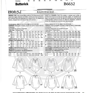 Patron de top femme Butterick B6455- Créa'tissus St Gaudens - Tailles De 32 à 42 (XS-M) Y Les patrons Butterick sont gradués de différentes tailles , pour femme, homme, enfant; Vous trouverez aussi des accessoires de décoration et de mode.Since 1863 TOP POUR FEMMES : ce pull très ample a un col et des manches raglan, ainsi que des variantes de tissu, de manche et dourlet. B : Bords contrastants au niveau du cou et des manches, ourlet préformé. C : manches élastiquées, ourlet arrondi. D : Liens sur les manches avec porte-bébés Ce patron de couture pour femme peut être fabriqué dans les tailles 39, 38, 40 et 42., Ce pull très ample a un tour de cou et des manches raglan ainsi que des variations de tissu, de manches et d'ourlet. Butterick Patron de couture robe aple pour fee et fee Code design... Butterick B6632 Patron De Couture Missese Facile à Enfiler Ces hauts amples sont un moyen confortable et mignon d'ajouter des pièces personnalisées à votre collection de vêtements. Ces paquets d'échantillons sont faciles à coudre et comprennent des modèles de couture, des instructions, des recommandations de tissu, des échantillons et un tableau des tailles pour (4) différents hauts pour femme qui peuvent être fabriqués en tailles 39, 36, 38, 40, 42 et 42., Comprend des modèles de couture, des instructions (français non garanti), des recommandations en tissu, des pièces de patron et un tableau des tailles pour (4) différents hauts pour femme