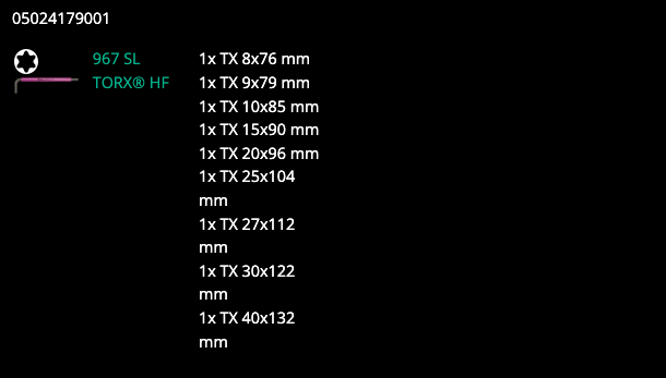 Juego de llaves acodadasfunción de sujec.larga 967/9 TORX XL HF 1 - Wera 967/9 TORX XL HF 1 - Juego de llaves acodadas,función de sujec., ,larga, Porter 05024450001., Conditionnement : 1 pièce (s) 967 SL Llave acodada TORX® HF Multicolour con función de sujeción, TX 9... 967/9 TX XL HF 1 Clés Mâles Coudées TORX® HF Clé mâle coudée Wera haute qualité, pour vis à empreinte TORX®. La fonction de retenue sur la partie longue permet un maintien sûr de la vis sur l'outil Avec fonction de retenue pratique : la force de verrouillage résultant de la pression superficielle exercée entre la pointe d'entraînement et le profil de la vis permet de maintenir la vis fermement sur l'outil , Patte extra longue