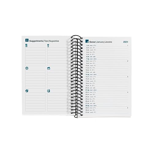 Agenda Spirale Caddy Journée Page Cat Polka Dots 24., Couvertures en spirale en carton doublé et plastifié mat., Fermeture par élastique. Miquelrius - Quaderno A4 Professional, 120 fogli da 70 g/m², 100 a griglia 20 li Reliure à spirale qui permet d'ouvrir à plat l'agenda et de faire le tour complet. Comprend: Jours fériés de Catalogne et ses capitales de province, Espagne et Portugal. Langues : catalan, anglais et portugais. Détails en stamping doré. Dimensions : 80 x 120 mm Langues: Catalan - Anglais - Portugais Contenu : annualité jour par page (samedi et dimanche sur une même page) ; de janvier à décembre 2024., Fiche de données personnelles, calendrier 2 ans, calendrier bimensuel sur chaque double page, dates à retenir, recommandations, planning mensuel, feuilles pour notes et feuilles d'adresse. Fiche de données personnelles, fiches pour notes et fiches d'adresse. Reliure à spirale avec feuilles micro-perforées dans le coin pour indiquer la date actuelle. Contient : annualité jour par page (samedi et dimanche sur une même page), calendrier 2 ans, calendrier bimensuel sur chaque double page, dates à retenir, recommandations, planning mensuel. Miquelrius - Agenda Escolar 2024-2025, Septiembre 24 A Junio 25, 155 X 215 Mm, Agenda Día Página, Cubierta Cartón Forrado, Agenda 2024 2025, Espiral Metálico Rosa, Español E Inglés, Limones Cet agenda annuel pour l'année 2024 offre une organisation optimale avec sa mise en page jour par page. Son format compact Caddy 80 x 120 mm en fait un... Couverture rigide en carton doublé et plastifié mat avec détails en or stamping., Élastique de fermeture.