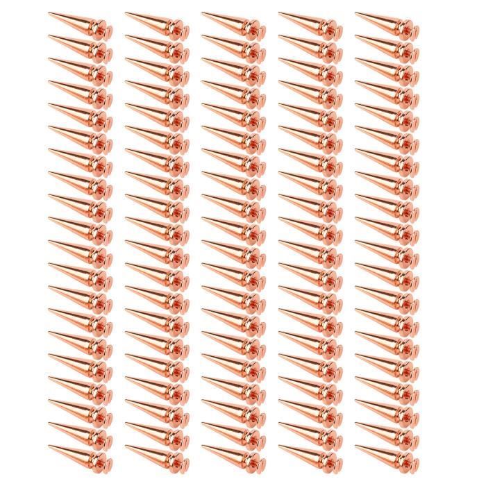 Matériau : cuivre (haute qualité, ne rouille pas facilement). Hauteur : 3,3 mm, diamètre : 9 mm , Quantité : 100 pièces Facile à fixer à la main sur le cuir et les tissus Hauteur : 3,3 mm, diamètre : 9 mm · Quantité : 100 pièces · Matériau : cuivre (haute qualité, ne rouille pas facilement) · Facile à fixer à la main sur le cuir et... RIVET,9mm gun-black--Ensemble de 100 Rivets ronds Double face pour... Ahlsen 100 Pièces 7x10 Mm Métal Rivets Décoratifs Punk Pointes Cônes Perles cônes travaillés 8x6 mm - Doré à l'or fin x5 - Perles & Co