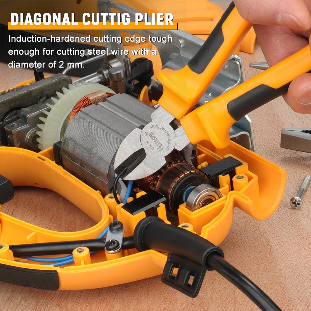 Kit de 3 pinces 160 mm, pince coupante diagonale et bec long Les lames ont été soumises à un traitement thermique à haute fréquence pour assurer une performance de coupe nette. - Qualité supérieure : le kit de pinces Hoteche contient 1 pince universelle de 160 mm, 1 pince coupante latérale de 180 mm et 1 pince à long bec de 160 mm, toutes fabriquées en acier au carbone 45# de haute qualité. Investissez dans la qualité avec le set de pinces Hoteche Pince A Bec Long Différents Types De Pinces à Bec Long Pince Universelle Pince Coupante Multifonction - Chine Pince Coupante, Pince à Bec Long Pince à Main Professionnelle - Utilisation polyvalente : parfaitement adaptée pour les travaux dans l'atelier, la maison ou le bricolage. - Poignée confortable : les poignées ergonomiques avec surface antidérapante sont agréables à tenir et assurent une utilisation confortable. Kit idéal pour les électriciens, les mécaniciens et les bricoleurs. Les lames usinées avec précision assurent une longue durée de vie. - Robuste et durable : les pinces sont forgées, traitées thermiquement et ont une dureté supérieure à HRC40°. Pince coupante latérale ZERONE 107F1 - Acier haute qualité - Convient... Obtenez le kit de pinces Hoteche maintenant et réalisez vos projets sans effort et efficacement
