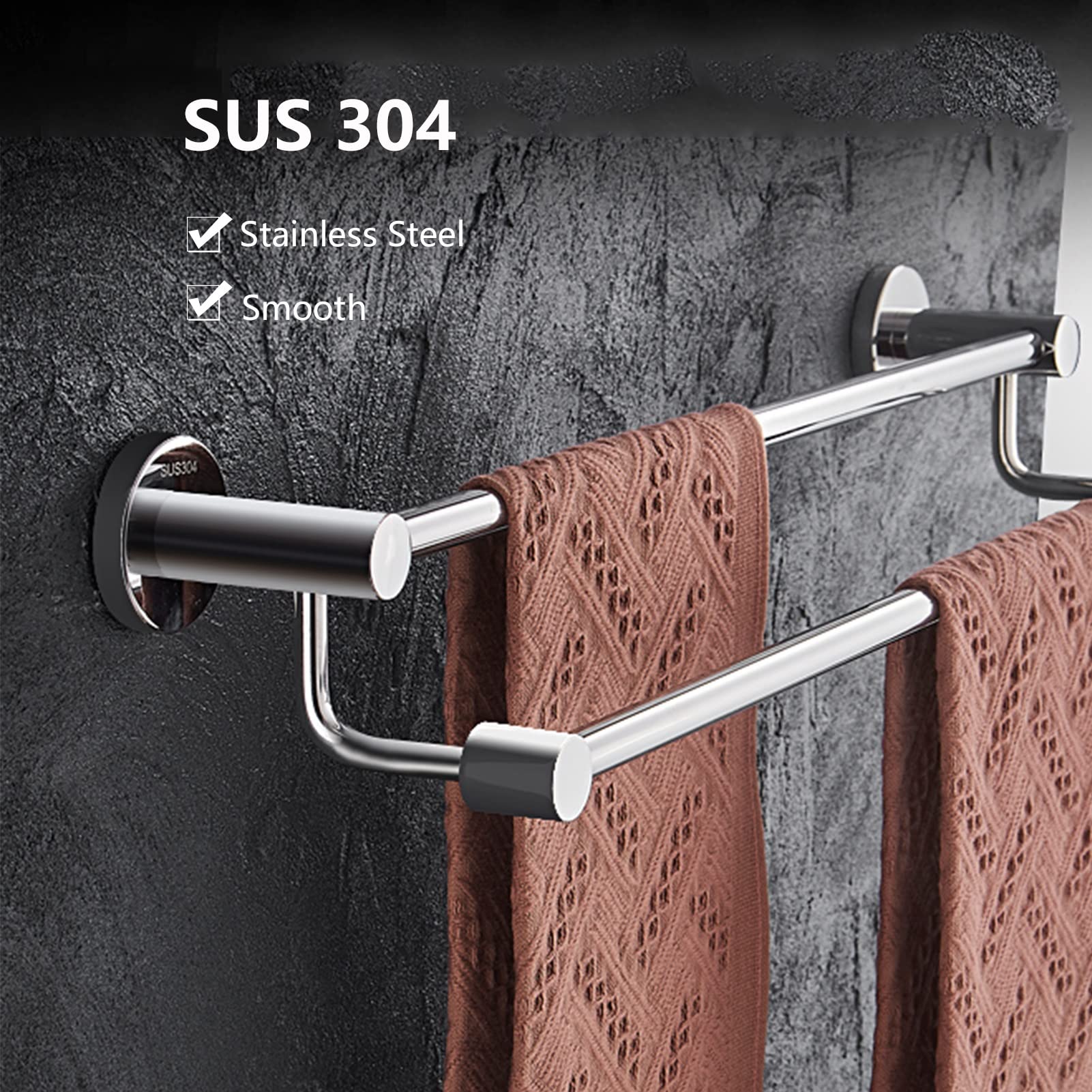 Porte-serviettes résistant. Veuillez vous assurer que ce porte-serviettes est installé sur une surface murale solide, telle qu'un mur en béton, une brique ordinaire, une surface murale en bois massif. Large gamme d'applications et gain de place facile., 3., Il peut vous aider à garder votre salle de bain, cuisine, chambre bien rangée et lumineuse. Barre Porte-Serviettes en Acier Inoxydable - 40cm 50cm 60cm 70cm 80cm Porte-Serviettes Double Porte Serviette Salle de Bain Acier Inoxydable SUS 304 Barre Porte Torchon Mural 60CM Brossé. 34,60€. 52,02€. Livraison gratuite. Porte... Double Porte Serviette Salle De Bain YUMORE Double Barre Porte-Serviettes De Bain 60CM Porte Serviette à Barre Porte Serviette Salle De Bain Son design simple et son look moderne conviennent à divers scénarios tels que les toilettes, les salles de bains, les cuisines et les chambres dans les maisons et les hôtels., 1., Fabriqué en acier inoxydable, solide et durable adapté aux environnements humides., 2., C'est un porte-serviettes élégant et fonctionnel. Convient pour un usage domestique et commercial. ★ Design moderne : aspect classique en acier inoxydable, la conception des vis dissimulées rend le produit plus beau et moderne, garde votre salle de bain et votre salle de douche propres. Remarques:▶ Avant d'installer le porte-serviettes, assurez-vous que la position de perçage est équilibrée. ★ Gain de place : notre porte-serviettes peut être un excellent assistant de rangement, idéal pour suspendre des serviettes, des écharpes, des vêtements, des chiffons et des chiffons., Capacité : 10 kg.