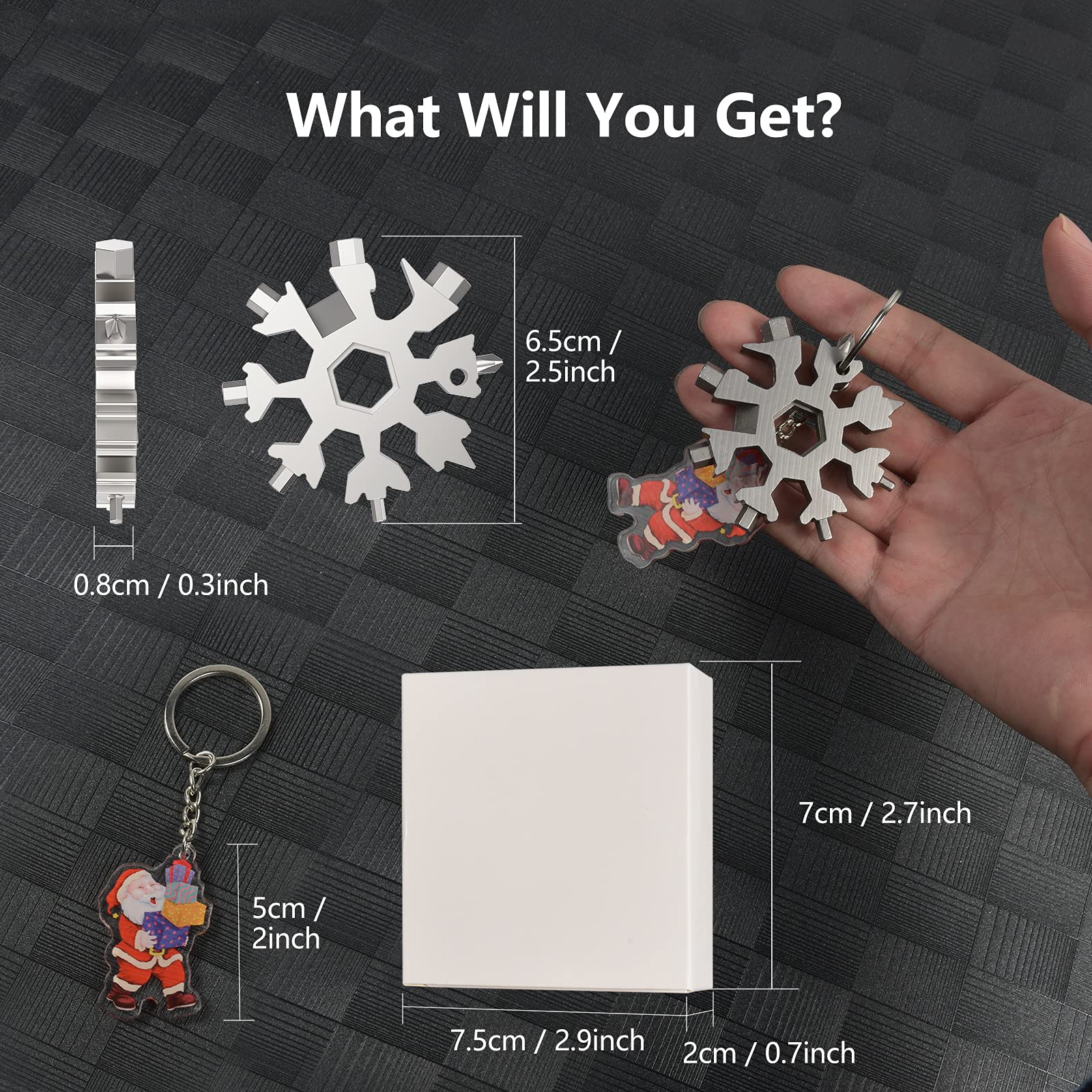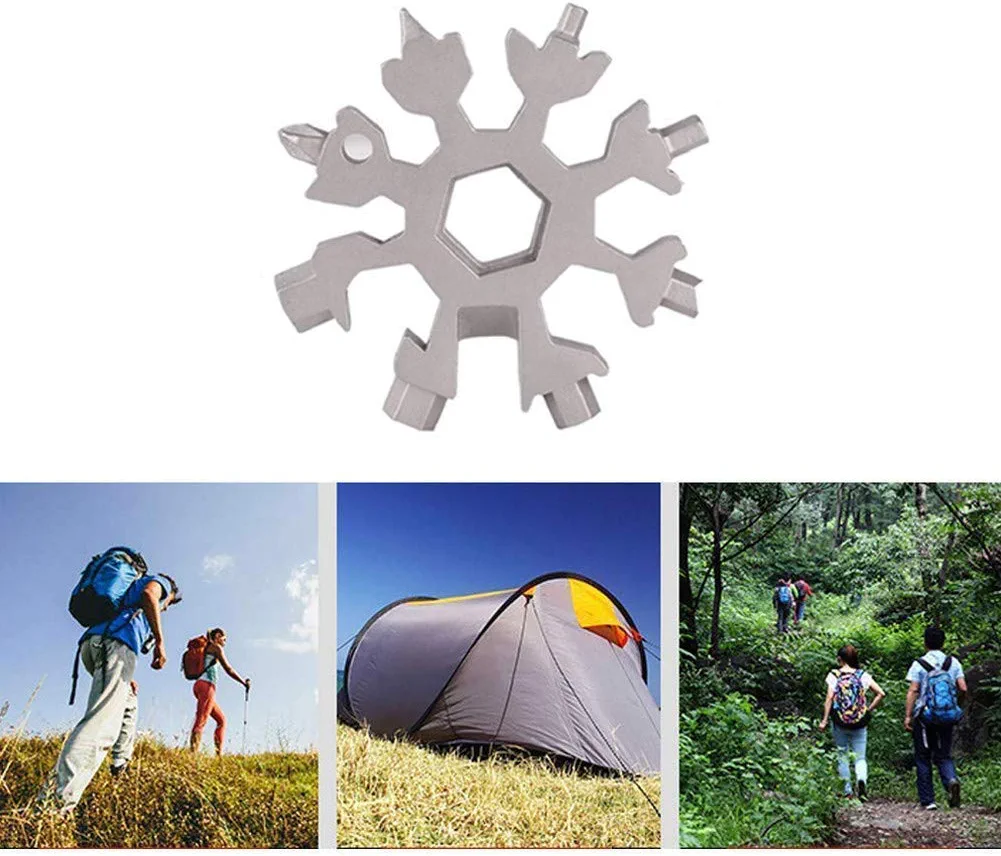 Il est adapté pour les activités de plein air pour les amateurs de militaire, tels que le camping, les embarquements, le sauvetage et l'utilisation possible. Outils Multifonctions Outil Multifonction Flocon De Neige 18 En 1 En Acier Flocon 18 En 1 Multi Outil Fonction outil flocon de neige Outil multifonction tout en un : tournevis plat et boîte coupante. Histoire du produit de l'outil multifonction 18 en 1 : Pourquoi concevoir un flocon de neige EDC ? Le personnel R & D de notre équipe aime les sports de plein air, et il est très peu pratique de transporter beaucoup d'outils, Il y a donc un concept de conception qui consiste à combiner différents outils dans un seul produit. Emportez le flocon de neige multi-outil avec vous partout où vous allez. Accrochez-le simplement dans votre porte-clés, mettez-le dans votre portefeuille, laissez-le dans votre voiture ou mettez-le dans votre sac Haute qualité : nos tournevis flocon de neige sont fabriqués en acier inoxydable de haute qualité, de fabrication exquise, robuste et durable, antirouille et anti-corrosion. Fidèle à l'attitude., Servez pour vous. atharago Outil ultifonction en fore de flocon de neige en acier... Coupe-corde, décapsuleur, trou de clé, tournevis cruciforme : métrique (millimètre) - 3 ; SAE (pouce) - 1/8, clé Allen : Métrique : 3-4-5-6-8-9 ; SAE : 1/8-5/32-3/16-1/4-11/32-6/16., Clé hexagonale extérieure : métrique (millimètre) -7-8-9-10-11-13 ; SAE (pouce) -9/32-11/32-6/16-3/8-7/16-1/2., Caractéristiques : Noir ou argenté., Facile à transporter. Quel produit a été conçu à l'origine pour l'outil de flocon de neige en acier inoxydable ? Les flocons de neige en acier inoxydable multi ont été initialement conçus pour les vélos d'extérieur. HAOPYOU- Lot de 3 Outil Multifonction Flocon de Neige 18 en 1 en Acier Mais plus tard a constaté que ce produit est pratique pour une utilisation dans de nombreux autres endroits. À propos du service Sarastars Commencez par la créativité Restez coincé dans l'artisanat. Scénarios d'application de la neige multifonction : Plein air : vélo, camping, trekking, réparation de skis, briser le verre dans des moments dangereux. Outil multifonction flocon de neige 18 en 1 - Rend la vie plus facile et plus coloré. Taille de poche : le mini outil tout-en-un en forme de flocon de neige ne pèse que 65,2 g, avec un diamètre d'un peu plus de 5,1 cm, et peut être mis dans votre poche.