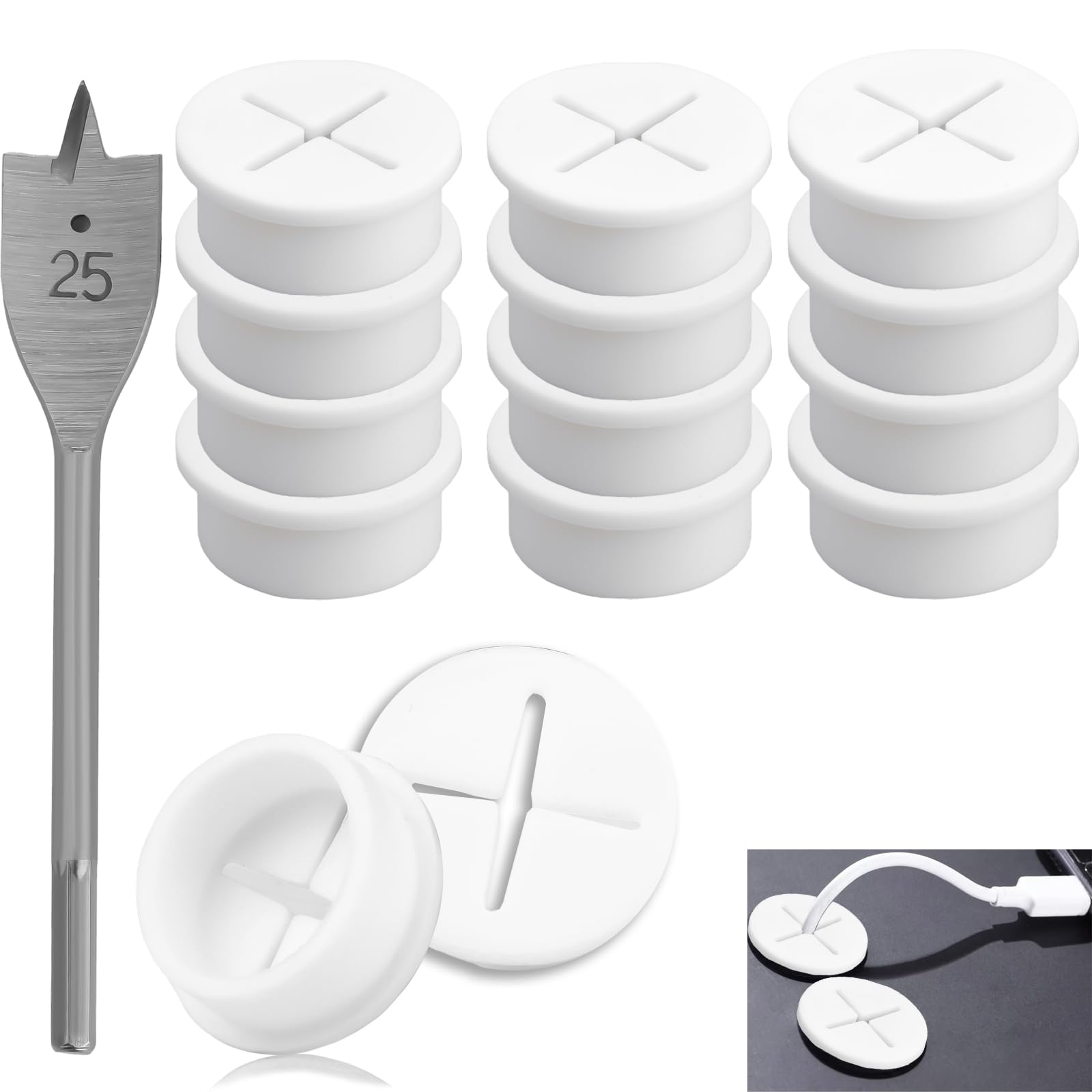 Kit pratique : vous recevrez 12 passe-câbles de bureau et un foret d'un diamètre de 25 mm. Le design en forme de croix du passe-câbles cache et organise... Spécification : Matériau : silicone Couleur : noir. Le design en forme de croix du passe-câbles cache et organise habilement tous les types de câbles pour garantir que les câbles désordonnés ne gênent plus et réduisent le risque de dommages EPLZON Lot De 10 Passe-câbles Flexibles En Silicone, Ronds, 25 Mm, Pour Bureau, Accessoires De Maison, Lieu De Travail, Noir, Avec 1 Foret De 25 Mm Mat riaux de haute qualit Ces passe-c bles en silicone sont fabriqu s partir de caoutchouc de silicone de haute qualit , stables et durables, r sistants la corrosion, tr s durables et stables et peuvent tre utilis s de nombreuses fois. Utilisation polyvalente : passe-câbles de table pour une variété d'occasions pour tables d'ordinateur, bureaux, bureaux ou autres meubles, etc. Évitez les fils emmêlés avec les ralentisseurs , dotés d'un matériau TPR durable, d'une capacité de charge de 2000 lb et d'une conception à verrouillage facile pour une gestion sécurisée des câbles Réducteur adaptation arbre de 31.75 mm à 25.4 mm avec clavette Design unique : le cache trou de câble a un design spécial en forme de croix qui vous permet de fixer les câbles dans différentes directions, le passage de câble vous aide à résoudre le problème des câbles encombrés et à créer un espace de travail et d'apprentissage propre et bien rangé, peut organiser efficacement le bureau Les joints de câble en silicone protègent les câbles, les câbles contre les coins tranchants, les bords perforés pour les tables d'ordinateur, les tables de bureau, les bureaux ou autres meubles, etc. Kit pratique : vous recevrez 12 passe-câbles de bureau et un foret d'un diamètre de 25 mm.