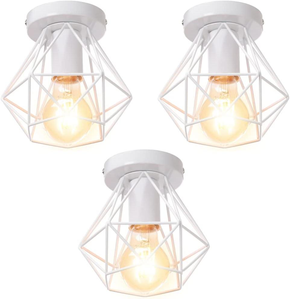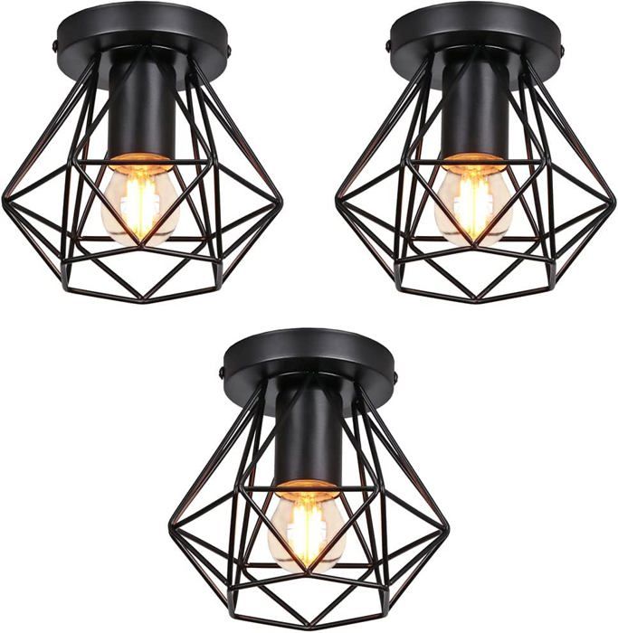 Dimension:16x16x15cm, Diamètre de base:10cm. L‘installation est rapide et facile. 【Type de lampe】Tension: 220-240V, Puissance: max 60W, Douilles de lampe: 1x E27., La prise est compatible avec toutes les ampoules à culot E27, Exemple : LED / Incandescent / Économie d'énergie lampe. 【Remarque】Veuillez vérifier la taille de la lampe avant d'acheter. Matériel: fer+ peinture, style: rétro, antique, vintage, industriel. L'effet après l'installation est absolument magnifique. Lot De 3 Plafonnier Industriel Cage Diamant En Fer Forg, E27 clairage De Plafond Luminaire Led Lustre Pour Couloir, Entree, Chambre, Cuisine (Noir) ; Du sparer... 【Plafonnier industriel stoex】Matériel: fer+ peinture, style: rétro, antique, vintage, industriel. 【Style industriel vintage】Fabriqué en métal ferreux et peint avec la technologie de laque, combiné avec un design de style rétro industriel classique. Si l'espace est plus grand, nous vous recommandons fortement d'en acheter plusieurs. 【Facile à installer】 Tous les matériaux nécessaires au montage sont fournis, même le fil de terre et le clip de borne sont fournis gratuitement. STOEX Plafonnier rétro cage forme diamant 25cm, style industriel Plafonnier Industriel Lot De 3 Cage Diamant En Fer Forgé, E27 Éclairage Luminaire Couloir Cette lampe est un petit plafonnier.