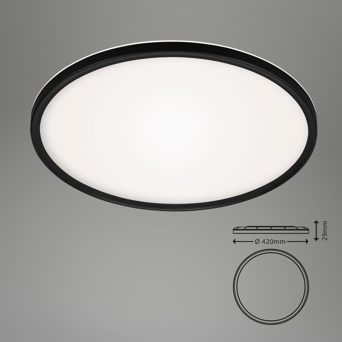 Ce plafonnier LED moderne et carré, au design blanc simple, attire l'attention grâce à son bord noir et aux applications noires au milieu de la lumière... Ce plafonnier LED moderne et carré, au design blanc simple, attire l'attention grâce à son bord noir et aux applications noires au milieu de la lumière. La lampe de salon LED convainc par son économie d'énergie de 22 watts, sa puissance lumineuse de 3 000 lumens, sa température de couleur de 4 000 Kelvin et sa durée de vie moyenne élevée d'environ 25 000 heures. Briloner Plafonnier BRILONER 3392-015 LED, Plafonnier Avec Effet D'éclairage De Fond, 22 W Briloner Lampen Le diffuseur de luminaire crée un effet unique de ciel étoilé. Grâce à la fonction de rétro-éclairage indirect, le plafonnier LED crée une atmosphère agréable et fournit un éclairage optimal Plafonnier LED moderne, rond, blanc-noir, en plastique. Grâce à son design simple, ce plafonnier est polyvalent et peut être utilisé comme lampe de salon, de cuisine, de chambre à coucher ou d'entrée - grâce à son cadre de montage noir, il attire néanmoins l'attention dans vos locaux Plafonnier Rond Effet Etoile Paolo Led 4000k Blanc IP44 Trio Lighting Ce plafonnier LED moderne et carré, au design blanc simple, attire l'attention grâce à son bord noir et aux applications noires au milieu de la lumière Dimensions du produit : 420x420x29mm (Lxlxh) Sa couleur de lumière peut être réglée avant l'installation à l'aide d'un interrupteur. Ultra mince : grâce à la dernière technologie LED, ce plafonnier est extrêmement plat (seulement 2,9 cm) et offre ainsi une élégance simple - et est également polyvalent, par exemple comme lampe de salon ou lampe de chambre à coucher.