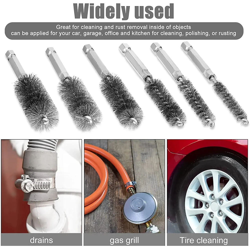 Marque : 1., La brosse est fabriquée en acier inoxydable, solide et durable, peut nettoyer complètement la rouille et les détails, trou de suspension pour un rangement pratique., 2., La brosse métallique pour perceuse a une large gamme d'applications pour les perceuses électriques, les perceuses à percussion, les meuleuses à moules., 3., Capable de nettoyer soigneusement les tuyaux incurvés et les tubes avec des angles inférieurs à 90 degrés, capable de garantir un nettoyage en profondeur que d'autres brosses ne peuvent pas atteindre. Brosse à Alésage Métallique, Tige Hexagonale 1/4 En Acier Inoxydable 6 brosses métalliques avec tige de 3 mm en acier inoxydable polissage Dremel outil rotatif Cisea. 6. 10,45€. 27,70€. Livraison gratuite. Ajouter au panier. Brosse... Design pratique : chaque brosse à alésage a une poignée hexagonale de 6,35 mm qui peut être installée sur la perceuse ou la meuleuse à matrice, ce qui la rend facile à pénétrer dans les trous étroits et les espaces pour le nettoyage. Quantité suffisante pour répondre à vos besoins d'utilisation quotidienne et de remplacement. Poids du colis : 133 g. Contenu de l'emballage : vous recevrez 6 brosses métalliques en acier inoxydable. Facile à utiliser : ce lot de brosses métalliques est compatible avec une gamme d'outils électriques, y compris les perceuses, les visseuses à percussion et les meuleuses à moules. Contenu de l'emballage : 6 alésages en acier inoxydable Brushe La longueur de la brosse métallique est de 10 cm et les diamètres sont de 8 mm, 10 mm, 12 mm, 15 mm, 17 mm et 19 mm. Les brosses et roues rotatives sont présentent dans l’assortiment de . Il en existe plusieurs types : celles montées sur tiges et celles avec alésage. Voir la liste complète sur La brosse rotative pour perceuse La brosse rotative sur tige est prévue pour s’adapter aisément à tous types de mandrin de perceuse ou de visseuse. Elle est préconisée pour le décapage, l’ébavurage, le brossage, le polissage et le ponçage. Elle est utilisée sur des supports tels que la peinture, la rouille ou les soudures. Elle se trouve soit sous forme de brosse pinceau, qui permet d’atteindre des endroits difficiles d’accès, soit de brosse coupe pour les plus grandes surfaces à nettoyer. Le garnissage est en acier dur. La brosse circulaire sur tige La brosse circulaire rotative sur tige ressemble à une roue plate avec un centre en métal et des filaments d’acier, de laiton, d’inox, ou de nylon sur tout le pourtour. L’épaisseur de la brosse est relativement fine et sa tige s’adapte sur tous les outils rotatifs électriques. Ces deux types de brosse existent aussi en assortiment simple ou avec un panachage des deux modèles. La roue abrasive La roue abrasive de polissage est constituée de lamelles de tissu et de mousses de feutre abrasives. Son action est le satinage, le ponçage et le meulage ainsi que la taille. Voir la liste complète sur La brosse rotative pour meuleuse La brosse rotative avec alésage est principalement une brosse coupe forme boisseau ou forme ronde. Elle est compatible avec les meuleuses angulaires. Elles servent pour ébavurer, nettoyer et éliminer la rouille et la peinture. On trouve aussi dans la gamme avec alésage une brosse circulaire métallique adaptable aux tourets et aux bancs de polissage. Son garnissage est en acier. Elle permet de décaper et de décalaminer. Voir la liste complète sur Brosse Metallique Visseuse Alésage En Acier Inoxydable Avec Tige De 6,35 Mm – Brosse Brosse Acier Inoxydable Il suffit de monter la brosse sur n'importe quel outil compatible pour nettoyer les zones difficiles d'accès, ce qui permet d'économiser du temps et des efforts par rapport aux brosses métalliques manuelles traditionnelles.