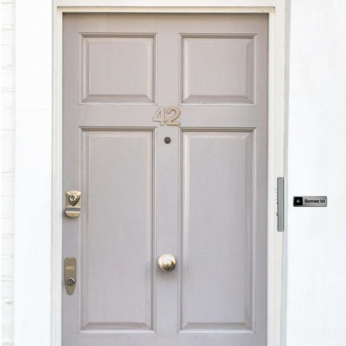 Une plaque signalétique prête à l'emploi, sans personnalisation requise. Bronze Moigniez Plaque Adhésive NE SONNEZ QU'UNE SEULE Gravé au laser avec précision, le texte reste net et lisible même après une utilisation prolongée. Une fixation facile : Plaque livrée avec adhésif 3M pré-collé au dos. Avant de coller votre plaque, pensez à bien nettoyer la surface de pose. Produit fabriqué dans nos ateliers en Camargue Plaque Sonnette Exterieur Plaque Signalétique Gravée Autocollante Sonnez Ici Flèche Gauche - Or Brossé - Format 12x3,7 Cm Plaque A Graver Avant de coller votre plaque, pensez à bien nettoyer la surface de pose. Plaque Gravée Plaque Signalétique Gravée Autocollante Sonnez Ici Flèche Droite - Marron - Format 12x3,7 Cm Autocollant Sonnette · Les internautes ont aussi... Une signalisation claire et efficace compréhensible par tous. Une fixation facile : Plaque livrée avec adhésif 3M pré-collé au dos. Gravé au laser avec précision, le texte reste net et lisible même après une utilisation prolongée. FindTheDeal : découvrez sans effort les offres de shopping sur FindTheDeal.