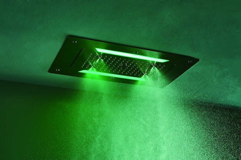 DEBIT PUISSANT ET INSTALLATION SIMPLE : Fournie avec tout le nécessaire pour une pose rapide. Colonne De Douche Noir BERNSTEIN - Douche De Tête Encastrable Au Plafond XXL- DPG5030 - 70 X Colonne De Douche Thermostatique Douche à effet pluie avec éclairage LED et 4 fonctions. Douche de tête XXL en acier inoxydable DPG5030 - Noir - 70 x 38 cm - Montage au plafond. La douche de tête offre quatre fonctions à votre expérience tropicale: douche de pluie, cascade, pluie de bulles (bubble rain) & fonction jet-pluie ou jet-brouillard.La douche de tête est encastrée dans le plafond de telle sorte que les raccords ne seront pas visibles Débit généreux : jusqu’à 32 l/min pour la pluie, 32 l/min pour la cascade. Portée jusqu’à 20 m. BERNSTEIN - Tête de douche rectangulaire NT201 - 30 x 22 cm - Chrome... Chaque fonction transforme votre douche en un moment de détente absolue, digne d’un spa. Avec 4 fonctions (douche de pluie, cascade, pluie de bulles (jet à bulles) et fonction brumisateur), équipé d'un éclairage LED et de 15 programmes de changement de couleur (incl. Test : tête de douche XXL Bernstein DPG5030 avec LED et effet télécommande sans fil) avec buses anti-calcaire - Montage facile. La télécommande sans fil vous permet de régler la teinte, l’intensité et d’allumer/éteindre les LED selon vos envies. ECLAIRAGE LED RGB AVEC TELECOMMANDE INCLUSE : Créez l’ambiance idéale avec 15 programmes de lumière colorée. QUALITE SUPERIEURE ET FINITIONS HAUT DE GAMME : Fabriquée en acier inoxydable noir mat, elle combine élégance et robustesse. Ultra plate (2 mm hors cadre), elle est dotée de buses anticalcaires faciles à nettoyer pour un entretien minimal et une longévité maximale.