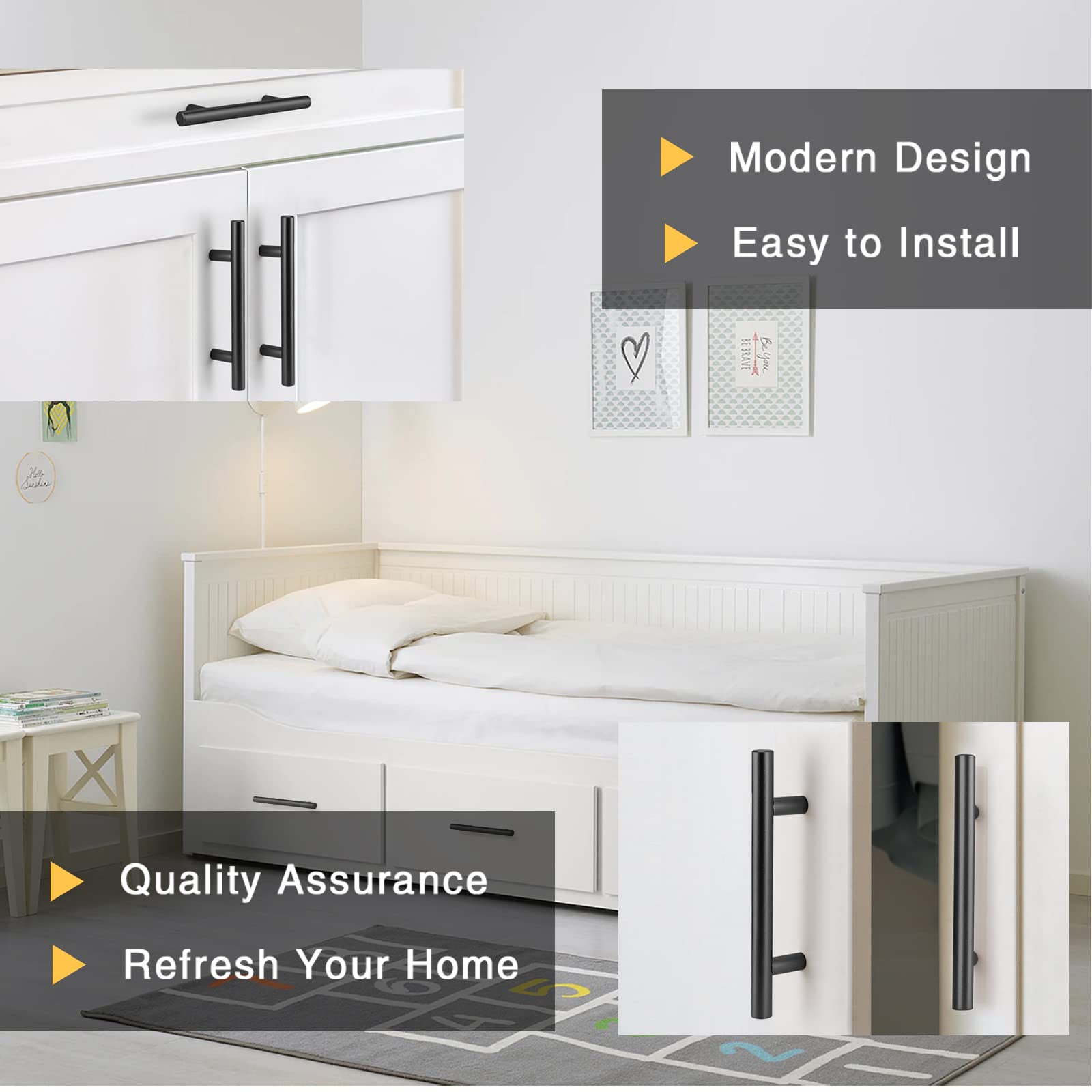 Poignées de tiroir en T. Poignées d'armoire noires. · La surface est finement biseautée et polie à la main après des heures, elle touche une sensation douce, lisse et de haute qualité. Lot de 10 poignées de porte de cuisine 160 mm centre de trou plat noir... Poignées d'armoire PinLin – Faites attention à chaque détail., Trou profond. Nous proposons des produits d'excellente qualité et un design tendance. Les poignées élégantes et modernes s'adaptent bien à votre intérieur. Il est très facile pour vous d'installer nos poignées de tiroir avec un tournevis. Lot de 10 - Acier Inoxydable - Noir - Entraxe 160 mm. Livraison gratuite. 26,27 €. Ajouter. 6pcs noir Poignée d'Armoire de Cuisine Meuble Tiroir (80MM, noir Poignées d'armoires de cuisine Les poignées d'armoire noires sont lisses au toucher et faciles à tenir. Chaque poignée est emballée individuellement pour éviter les rayures. Le design classique en forme de T noir apporte une touche moderne à n'importe quel meuble et ajoute une touche d'élégance aux armoires de votre salon ou salle à manger. Chaque poignée est livrée avec des vis de 2,5 cm et 4,5 cm. Poignée De Porte Cuisine Leroy Merlin Lot De 20 Poignées De Meuble En Acier Inoxydable Noir 160 Mm Poignee De Porte Nous proposons deux types de vis pour chaque poignée : M4 * 1 pouce (25 mm), convient aux épaisseurs de plaque de 0,6 à 1,18 pouces (15 à 30 mm). Idéal pour la plupart des cabinets, coffret, coffre à vin, vrac, drawer, étui en bois Centre des trous : 160 mm - Longueur totale : 224 mm - Hauteur : 32 mm - Largeur : 12 mm - Veuillez mesurer la taille de vos meubles avant d'acheter nos longs trains pour assurer une installation réussie Furniture Limited - Poignées d'armoire 10 pcs noir 160 mm acier Nous proposons 9 différentes tailles d'espacement des trous : 64 mm/76 mm/96 mm/128 mm/160 mm/192 mm/224 mm/256 mm/trou unique. Nos poignées d'armoire de cuisine sont en acier inoxydable 201 avec surface noire, creuses mais très robustes. Utilisation à long terme et ne tombe pas facilement. Quelle que soit la décoration d'intérieur, les poignées PinLin sont toujours idéales pour votre maison., Autres tailles disponibles. Si vous avez des problèmes, n'hésitez pas à nous contacter.