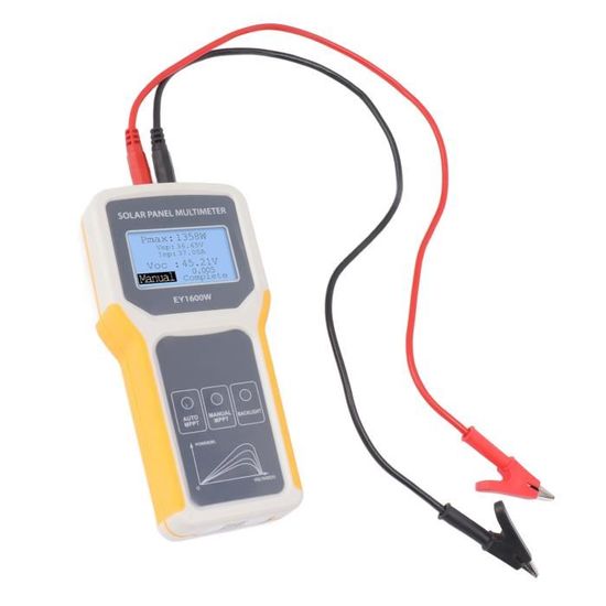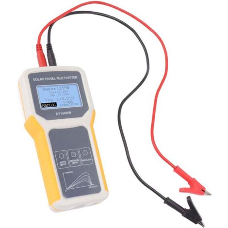 Spécification :Type d'article : multimètre de panneau photovoltaïqueMatériel : ABSPoids : env., 450g / 15., 9ozFonction : usage professionnelUtilisateurs : fabricants de panneaux solaires, distributeurs de panneaux solaires, installateurs de panneaux solaires, utilisateurs de panneaux solaires, ventilateurs de panneaux solairesFonction de mesure : courant continu, tension continueTaille du produit : env. Rétroéclairage clair : multimètre à panneau solaire avec grand écran LCD et rétroéclairage, les données peuvent être lues clairement sous la lumière du soleil. Ej.Life Multimètre 1600W, Testeur D'isolation Portable Avec Panneau Solaire Multimetre De Panneau Photovoltaique A Retroeclairage Transparent Pour Laboratoires Usines Passionnes De Radio 75311022 Panneau Ouvert Tbest Multimètre De Panneau Solaire Photovoltaïque Multimètre De, Testeur De Pan Compteur Production Photovoltaique Testeur MPPT de panneau solaire : ce multimètre de panneau solaire photovoltaïque peut tester le point de puissance maximale et la tension de circuit ouvert. Kit Solaire Plug And Play - 410 Wc Puissance Nominale - 37.2 V Tension... Affichage des données : Pmax indique la puissance maximale du point de puissance. Alimenté par panneau solaire : notre testeur MPPT de panneau solaire n'a pas besoin de batterie, il suffit de connecter les câbles au panneau solaire pour qu'il puisse fonctionner. Voc indique une tension en circuit ouvert. Lun des nombreux articles disponibles dans notre rayon {1} ici chez Fruugo !