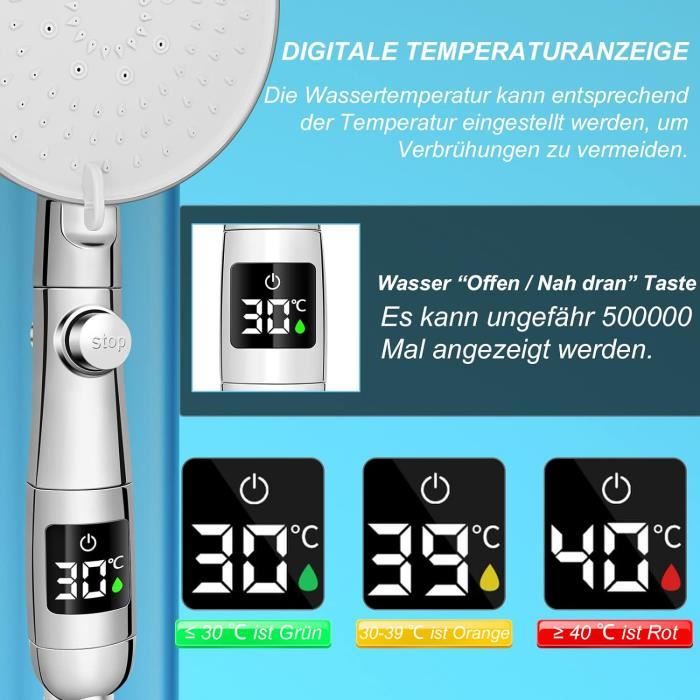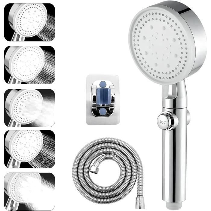Facile à installer : facile à installer et à enlever par vous-même, pas besoin de plombier. Tuyau Douche Cobbe Pommeau De Douche Grand Pommeau de douche à économie d'eau avec tuyau de 1,5 m, pommeau de... Il suffit de l'essuyer avec une serviette ou une éponge pour gagner du temps et des efforts Le tuyau en acier inoxydable crypté de 1,5 m de long est peint et muni d'un raccord universel qui permet à la douche de pivoter à 360 degrés et de prolonger sa durée de vie. Pommeau de douche avec 3 types de jet : spray, massage, spray et massage, il convient pour la douche, le massage de la tête, le bain de bébé et le bain pour animaux de compagnie, en outre, bien sûr, convient également pour le nettoyage de la salle de bain. Le bec en silicone est résistant à l'eau et à la saleté, flexible et résistant à l'usure. Facile à nettoyer : le calcaire peut être éliminé en essuyant légèrement les buses en silicone du pommeau de douche. Grand pommeau de douche à effet pluie : le pommeau de douche à effet pluie est composé d'une plaque de couleur nacrée résistante aux rayures et d'une surface chromée brillante, ce qui les rend inoxydables et durables. Nettoyage facile : le pommeau de douche est équipé de buses en silicone anti-calcaire. Pommeau douche haute pression de grande taille]Cette douchette de grande taille (15cm de diamètre) offre une zone de douche plus grande pour une expérience de douche ultime. Haute pression d'eau et fort débit de pluie pour gagner du temps de lavage.[7 modes de pulvérisation d'eau avec un tuyau de 1.5m]Une pommeau douche à main avec 7 types de pulvérisation vous procure un bain... Pommeau De Douche Grande Taille Pommeau De Douche Economie Deau LEMROE Pommeau De Douche Douchette Main 3 Types De Jets Jet Haute Pression Et 1095050 Tuyau Douche 1.5m Il dispose d'une interface filetée universelle G1/2 et le pommeau de douche est équipé d'un tuyau anti-torsion de 1,5 m.
