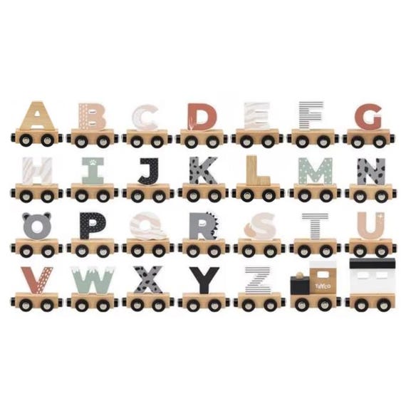 Créez votre nom avec ces lettres Sur le devant et le dos du transport qui complète le train Sélectionner les lettres que vous voulez Personnalisés au prénom, ou encore aux données de naissance de bébé, nos petits trains en bois feront des cadeaux originaux pour fille ou pour garçon Lettre A Train en bois couleur Naturelle Small foot by Legler® | Jouets... Handlehaus Lettre Pour Petit Train Personnalisable Imprimer son prénom lettres train wagons locomotive pour faire un