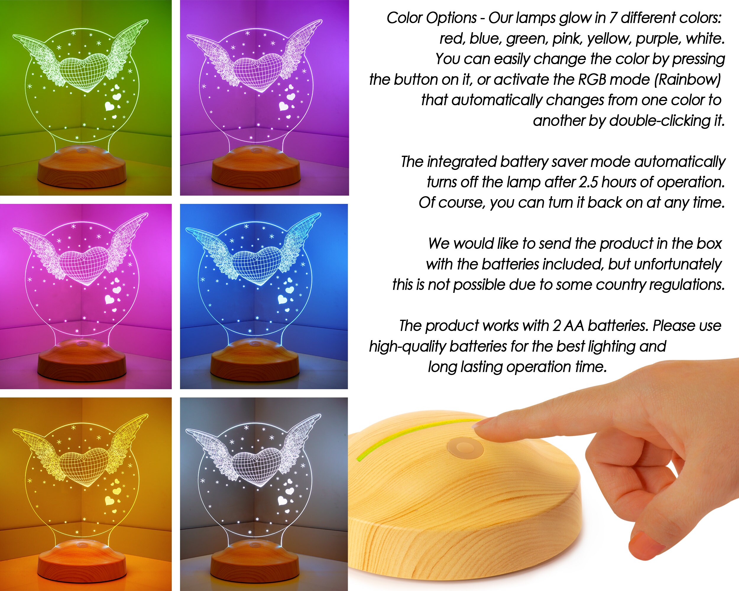 Matériaux avancés sélectionnés pour assurer la qualité Veilleuse 3D personnalisée, cadeau lampe LED personnalisé pour petite amie, cadeau Saint-Valentin, cadeaux d'anniversaire pour elle, lampe acrylique... Cadeaux de maman unique amour romantique Rose fleur 3D Led Night Approprié à la chambre à coucher, à l'étude, à la décoration de nuit de pièce de bébé. 7 Couleurs Change Rose Fleur 3D Lampe Souvenir Saint Valentin Le cadeau idéal pour tous les amoureux qui souhaite faire graver leur amour avec notre lampe Cœur en fleur. Votre lampe trouvera facilement sa place dans votre intérieur, que ce soit dans une chambre ou le salon mais aussi sur un bureau ou dans la cuisine Type d'élément: Veilleuses Est-ce que les piles sont nécessaires: Non Est-ce que les ampoules sont incluses: Non Certification: CCC, ce Production d'énergie: tactile Source d'alimentation: pile sèche, DC Forme: Floral Matériau du corps: PLASTIQUE Les piles sont-elles incluses? Non Source de lumière: Ampoules LED Type: Veilleuse Type de pile: AA Puissance: 0-5W Tension: 5V Il peut être illuminé ou utilisé comme ornement pour les enfants, les filles, les dames et autres excellents cadeaux.