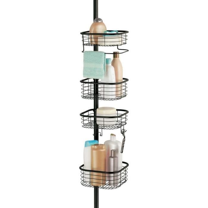 Organiseur de douche 99-315 cm étagère D'angle Douche Télescopique LIWI-Étagère De Douche De ELBE Sans Perçage, Organiseur De Salle De Etagere D'angle Douche Gifi N'endommage pas le plafond : installez rapidement la barre de tension sans percer de trous, sans outils, et sans endommager les murs ou les plafonds. Étagère de douche d'angle réglable à 4 niveaux (82-296 cm), organisateur triangulaire à poteau de Tension sans perçage pour salle de bain, cuisine, rangement... Étagère de douche d'angle réglable à 4 niveaux (82-296 cm Achetez VEVOR Étagère de Douche d'Angle Réglable 99-317,5 cm de Haut, Poteau Télescopique de Douche Multifonctionnelle avec 3 Plateaux de Charge Solides, Antirouille, Facile à Installer, Salle de Bain, Noir au prix le plus bas, livraison en 2 jours, retour sous 30 jours. Le poteau de tension est doté d'une grande capacité et d'un rangement astucieux à plusieurs niveaux. L'organiseur de salle de bain du support de douche d'angle est fabriqué en acier inoxydable de haute qualité, résistant à la corrosion et robuste Le plateau est équipé de ressorts qui permettent de se tenir du bord de la baignoire au plafond ou du sol au plafond. Pour toute question relative au produit, veuillez nous contacter via la plateforme Amazon, nous vous donnerons sûrement une réponse satisfaisante.