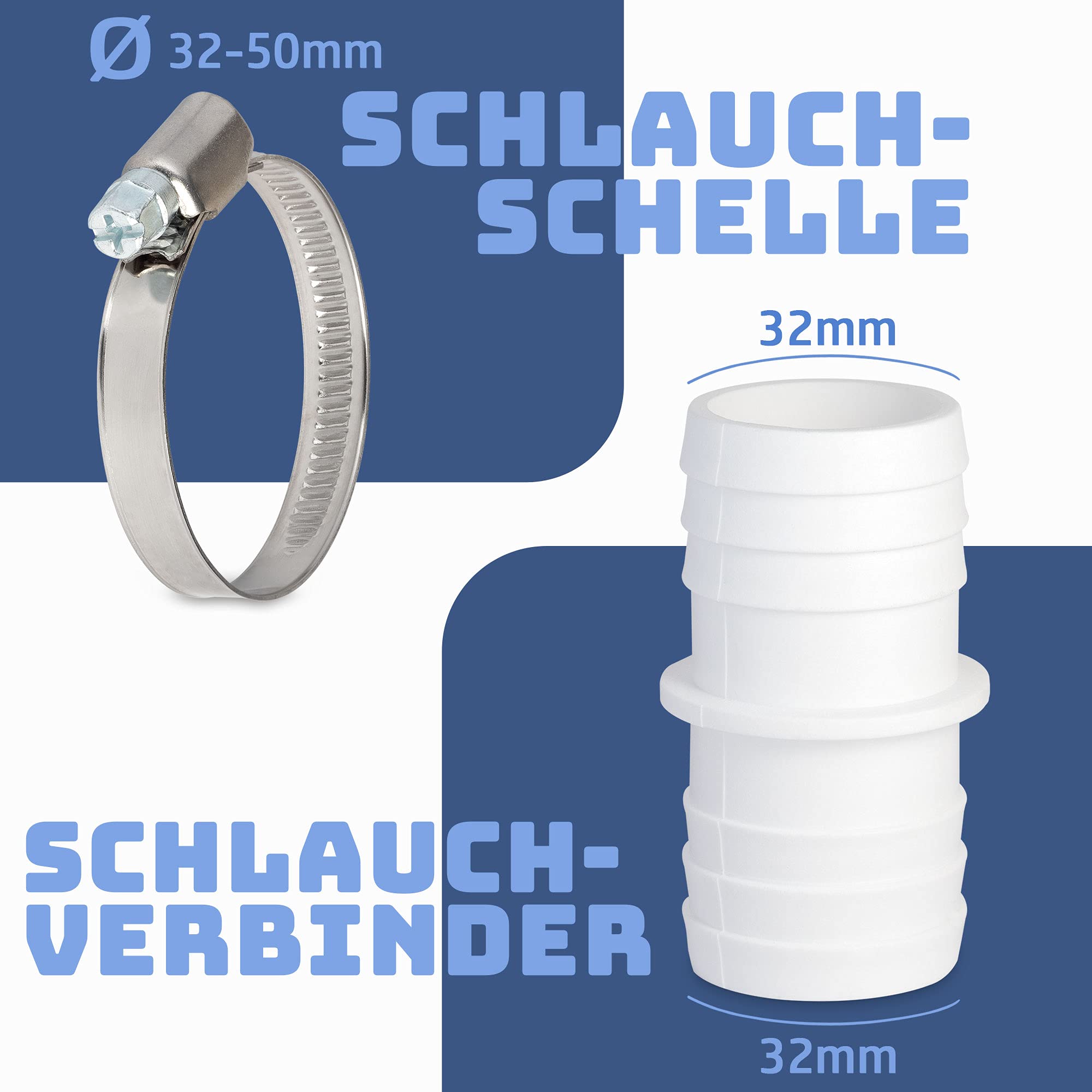 Vous pouvez les tuyaux d'équipement de piscine tels que les pompes et les aspirateurs de piscine. Pour desserrer la connexion, les colliers de serrage métalliques peuvent être à nouveau avec la clé de serrage. Colliers de serrage de Villkin Chez Villkin, nous produisons des produits de qualité supérieure et durables. + Variantes : 38 x 38, 32 x 32 ou 38 x 32., + Qualité supérieure. + Connexion sans fuite des tuyaux. Avec notre kit de raccord de tuyau, vous êtes parfaitement équipé pour la saison de la piscine. Découvrez à quel point la connexion des tuyaux peut être un jeu d'enfant. Profitez de la meilleure qualité., Avantages : Anti-fuite. Nos colliers de serrage métalliques résistants promettent une stabilité maximale. Laissez-vous convaincre dès maintenant et profitez d'une saison de piscine sans souci. Constatez-le par vous-même Avec le Le kit complet de Villkin contient tout ce dont vous avez besoin pour une connexion optimale du tuyau. Facile à utiliser et à installer. 2 Pcs Vanne D'arrêt Piscine 32mm Vanne D'entretien Pour Piscine Avec 4 Colliers De Serrage Accessoires Dentretien Pour Piscine Hors Sol 76091989 Avec la gamme de colliers de serrage de Villkin vous pouvez commencer immédiatement. Adaptateur 32 38mm Intex Raccords De Piscine GRE Diamtre 38 Avec Colliers De Serrage Raccord Tuyau Piscine 32mm Matériaux de qualité supérieure., Montage facile., Qualité supérieure. Vos avantages avec le set de colliers de piscine Villkin : Ensemble complet : 2 raccords de tuyau et 4 colliers de serrage en métal. Colliers de serrage anti-fuite de Villkin. Pour les piscines - Préparez-vous dès maintenant à construire votre piscine. Avec un La clé peut maintenant être serrée., L'étape suivante. pour l'autre extrémité du tuyau. Notre motivation est de résoudre vos problèmes quotidiens et vous garantit toujours d'excellents résultats. Vous apprécierez un déroulement sans souci. Lot de 2 raccords de tuyau de 32 mm à 38 mm de diamètre avec colliers...