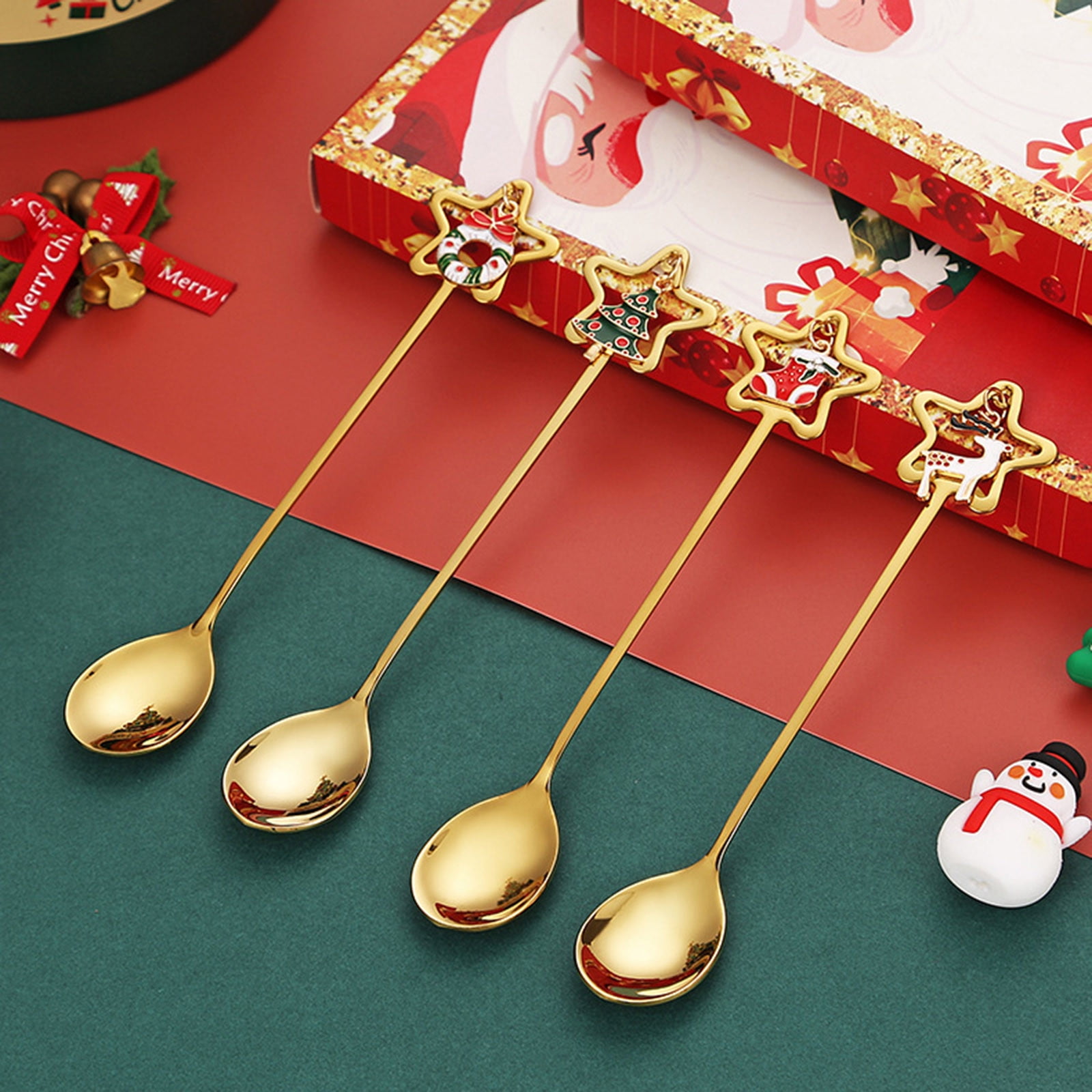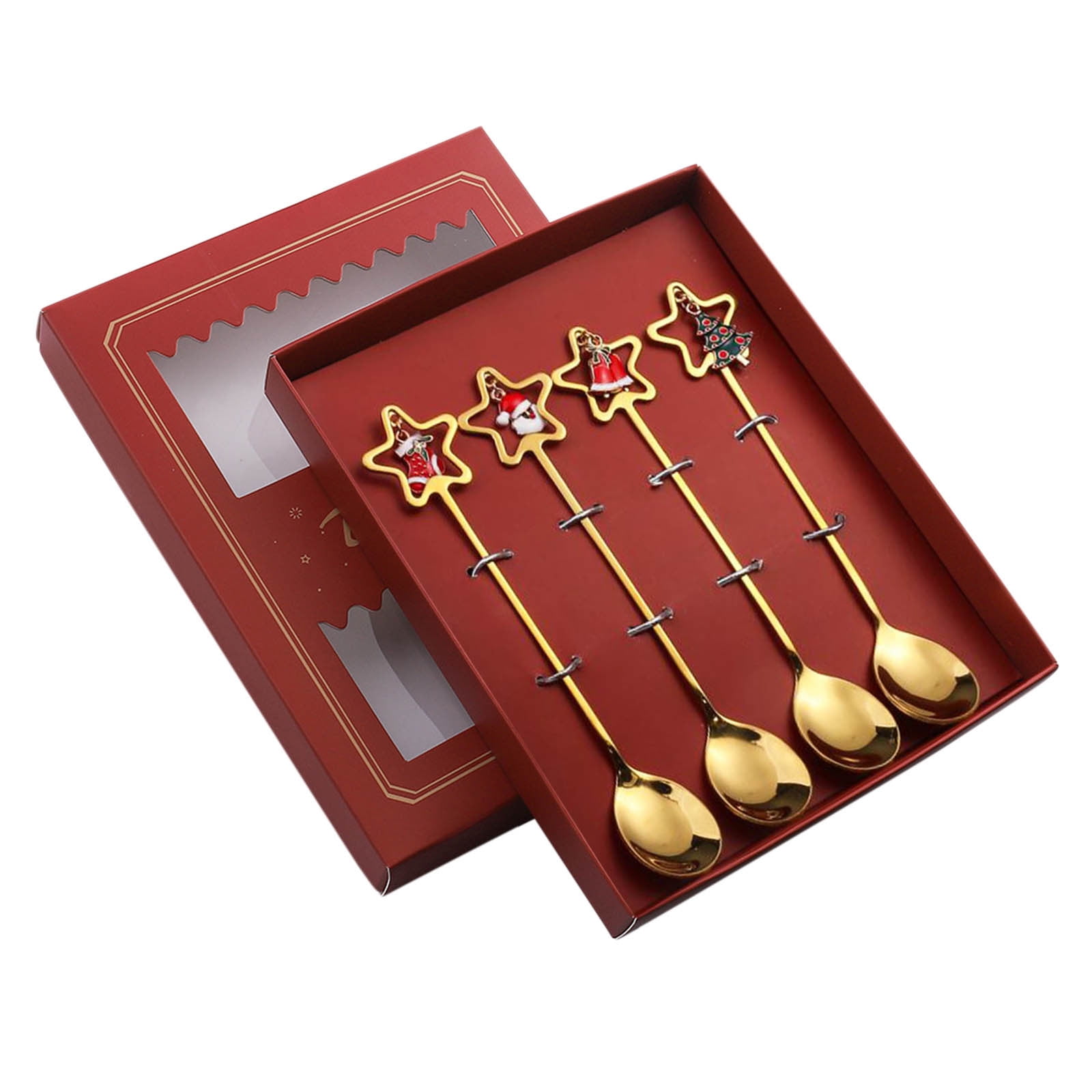 Dimensions des couverts de Noël Cuillères de Noël de Noël mesurant 13,70 x 2,30 cm Fourchettes à gâteau de Noël dimensions 14,00 x 1,60 cm Cet ensemble de couverts de Noël convient à tous, adultes et enfants. Matériau : cet ensemble de couverts de Noël est fabriqué en acier inoxydable avec une surface finement polie pour une plus longue durée de vie et un nettoyage facile. Ajoutez l'esprit de Noël à votre maison avec cet ensemble de couverts de Noël ! 10pcs Set de couverts de fourchettes et cuillères, set de couverts en acier inoxydable pour l Couverts de Noël : les poignées de couverts présentent 6 motifs différents sur le thème de Noël, ce qui vous permettra de passer une fête de Noël amusante dans une atmosphère riche et joyeuse. Set Couverts De Table De Noël, Cuillères à Café De Cet élégant ensemble de couverts est apprécié par les personnes de tous âges et sera une décoration de Noël accrocheuse pour votre fête de Noël Lot de 6 fourchettes et cuillères de Noël en acier inoxydable de différents styles. Cuillères de Noël fourchettes set couverts Pratique et beau, les couverts de Noël peuvent être utilisés comme couverts lors des repas et comme décoration de table lorsqu'ils ne sont pas utilisés. Ensemble de couverts de cuillère à café en acier inoxydable or argent thème dessin animé de Noël avec boîte-cadeau pour les fêtes de service de café...