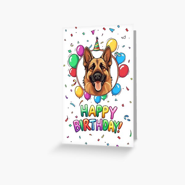 Carte de vœux de qualité supérieure et enveloppe de luxe fabriquée au Royaume-Uni sur une carte épaisse de 350 g/m² semi-brillante certifiée FSC. Taille de la carte : 145 x 145 mm pliée, 145 x 290 mm ouverte Sticker For Sale Avec L'œuvre « Anniversaire Chien De Berger Allemand Tan Et Noir Joyeux Anniversaire Par Wotsthis Cette superbe carte de voeux représentant une race de chien est un cadeau attentionné pour les fans de bergers allemands qui célèbrent un anniversaire spécial Ce que vous obtenez : une carte épaisse de qualité de 350 g/m² avec une enveloppe de couleur ivoire luxueuse prête à placer votre carte à l'intérieur. Amusant Berger Allemand Carte D'anniversaire L'intérieur a une surface mate lisse vous permettant d'écrire votre propre message personnel. Conçues et imprimées en Angleterre, nos cartes d'anniversaire pour homme ou femme sont garanties de les faire sourire. (Dimensions de la carte : 145 x 145 mm pliée, 140 x 29 mm ouverte). Carte de vœux « Le berger allemand souhaite un joyeux anniversaire...