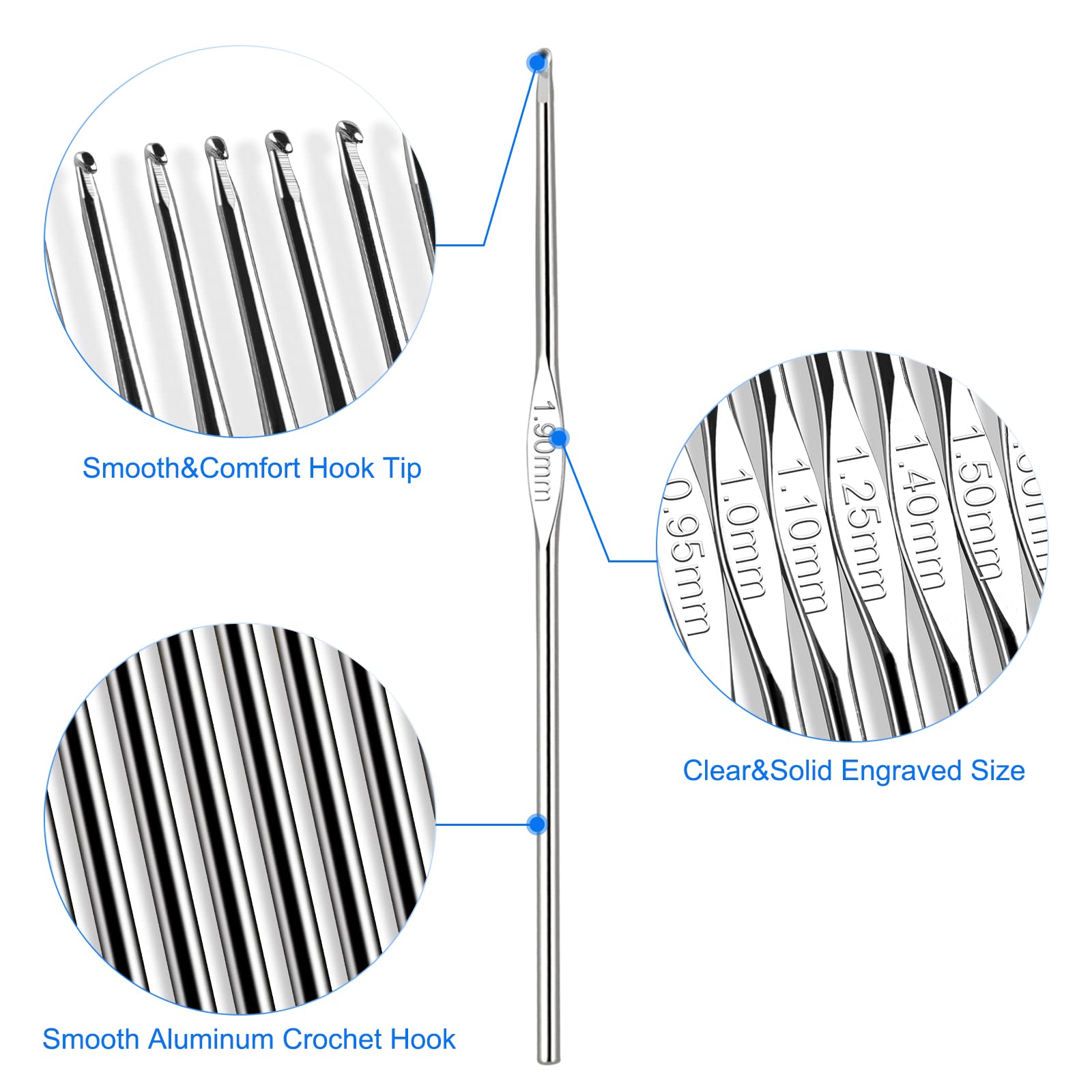 Matériaux : ABS et métal aluminium., Matériau : , 【Taille】 【Design】 , 【Application】 , Meilleur cadeau : Aeelike Kit de crochet pour débutants, jeunes et vieux, premier kit de Bon kit pour crochet : 14 aiguilles à tricoter en aluminium et 9 crochets ergonomiques, 12 fils de couleurs différentes, 20 marqueurs de points, 9 aiguilles à tapisserie en métal, 6 protecteurs de points, ruban à mesurer, ciseaux, machine à pompons, livret d'instructions de crochet et sac fourre-tout au crochet Laine à Tricoter Lot De 12 Crochets En Aluminium - Crochet - Facile à Tricoter Tricot Et Crochet Description du produit Aeelike Lot de 20 fils acryliques assortis pour crochet, 54 pièces avec crochets, ensemble de fil à crochet avec tout ce qui comprend 10 crochets multicolores en aluminium, aiguilles émoussées, marqueurs de point, outils d'art pour débutants, cadeau idéal pour les professionnels débutants Contenu : 80 % acrylique, 20 % soie de lait. Poids du fil