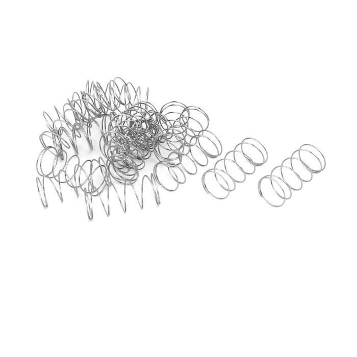Caractéristiques : diamètre extérieur : 5 mm ; diamètre du fil : 0,5 mm ; longueur totale : 15 mm. Ressort de compression en fil d'acier inoxydable 304. parfait pour une grande variété d'utilisations dans les maisons, le magasin, à la ferme ou au ranch, les petites entreprises Application : ressort de compression en fil d'acier utilisé pour tout, des appareils ménagers aux équipements de moteur, jouets, tondeuses à gazon, etc. Sourcing Map Tensor Muelle De Gancho Y Ojo De Acero Inoxidable M10 De Color Plat Contenu de l'emballage : 10 ressorts de compression. Spécifications: Matériau: Acier Inox 304 Traiter de surface: Polissage Diamètre extérieur: 15mm / 0,59-pouce Épaisseur de la paroi: 0,5mm / 0,02-pouce Longueur totale: 300mm / 11,81-pouce Contenu du coffret sourcing map 10 Stück Druckfedern Druckfeder Spiralfeder Stahlfeder 0,6 mm x 6 m Mode d'emploi : il peut être directement mis sur les produits de la canne ou mis dans les produits du tube. Matériau : le fil en acier inoxydable 304 offre de bonnes propriétés mécaniques avec une plus grande résistance à la corrosion et à la chaleur que le fil de musique.