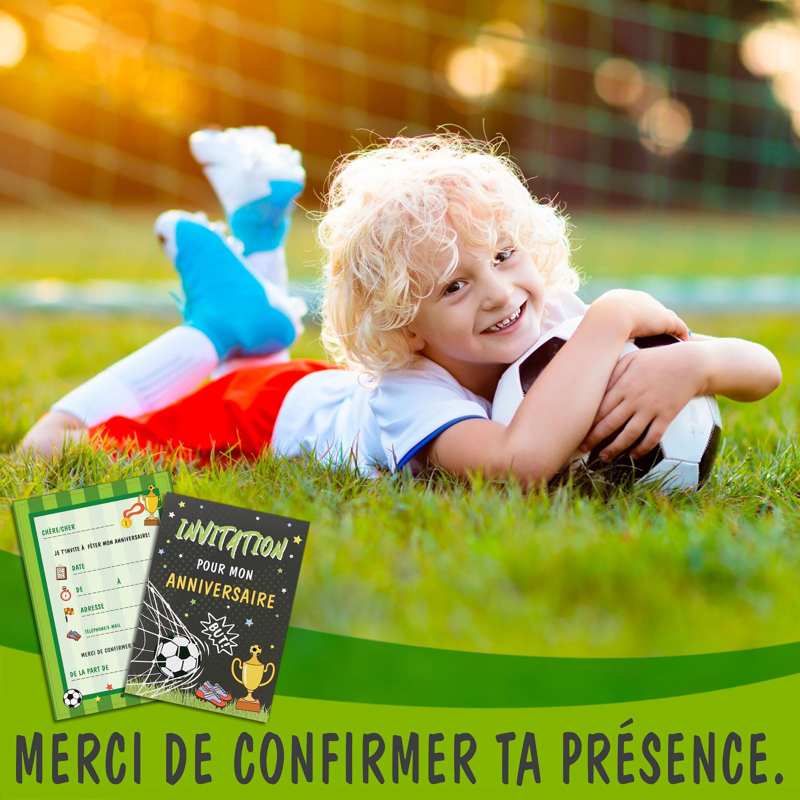 Convient à toutes sortes de soirées à thème, fêtes de jardin, fêtes d'été, confirmations, baptêmes, fêtes d'enfants, fêtes à la piscine, anniversaires d'enfants et autres occasions. La couleur peut varier légèrement en raison des différents affichages d'écran. et suffisamment d'espace au dos pour toutes les informations importantes. Lot De 12 Cartes D'Invitation Pour 6Ème Anniversaire D'Enfant - Pour Caractéristiques: Répandu: Les cartes d'invitation d'anniversaire pour enfants garantissent que vos invités attendent la fête avec impatience ! Veuillez noter que le chocolat KINDER est uniquement à titre d'exemple et n'est pas inclus dans la livraison 24 SETS CARTES Enveloppes D'invitation D'anniversaire Papier EUR 15,39... La face avant offre de l'espace pour coller une barre Kinder ou un autre petit objet. Conception unique: une carte d'invitation d'anniversaire imprimée recto verso de haute qualité avec un motif football. Des combinaisons riches pour répondre à tous vos besoins. Large gamme d'applications: notre ensemble de cartes d'invitation convient à diverses fêtes, anniversaires d'enfants, fêtes de filles, activités de plein air et autres soirées à thème. WERNNSAI Lot de 24 invitations de fête d'anniversaire sur le thème du sport pour garçons – Cartes d'invitation d'anniversaire avec enveloppes vierges pour enfants avec autocollants de but 459 Plus de 100 achetés au cours du mois dernier 1499$(0,62$/count) Livraison GRATUITE mer. 19 juin sur votre première commande Ou livraison accélérée demain 16 juin Carte Invitation Anniversaire Licorne Clabby 12 Sets Cartes D'Invitation Football Pour Anniires D Carte Invitation Gabby Chat Coffret de cartes d'invitation: vous recevrez 12 cartes d'invitation pour l'anniversaire d'un enfant et 12 enveloppes.