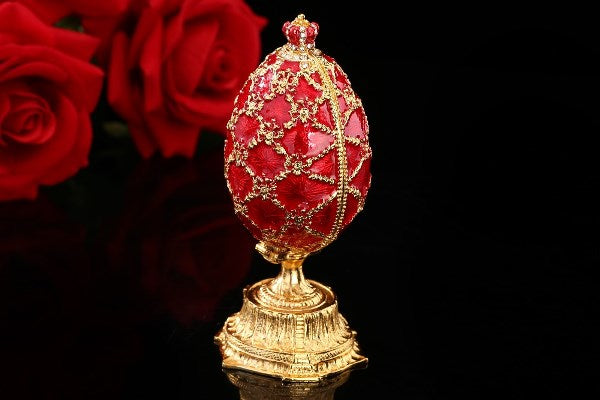 Copie oeuf Fabergé Les Lions T5202E105 : Artisanat russe La petite réplique de la couronne de l'empereur russe est placée sur le dessus de l'œuf. Cet œuf impérial, témoin de l'histoire russe, est estimé à 22,8 millions d'euros par la maison des ventes Christie's. Orné de 4 500 diamants... Oeuf De Style Fabergé / Boîte à Bijoux Avec Lions Et Couronne De L Material: Alloy of non-ferrous metals, enamel, crystals. Height: 3'' (7.5 cm). Weight: 0.2 lbs (90 g). Color: red. The egg can be used as a trinket jewel box Matériel: Alliage de métaux non ferreux, émail, cristaux.