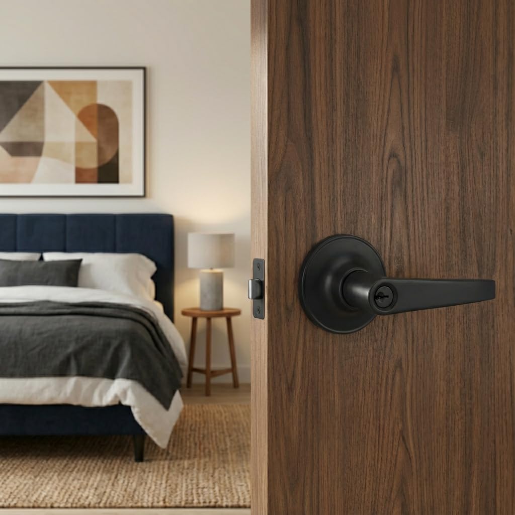 Qrity Serrure De Poignée De Porte Serrure à Levier En Alliage De Zinc, Ensemble De Poignée De Porte Moderne, Levier De Portes Antivol Avec Clés Pour Portes En Bois,Noir De Titane