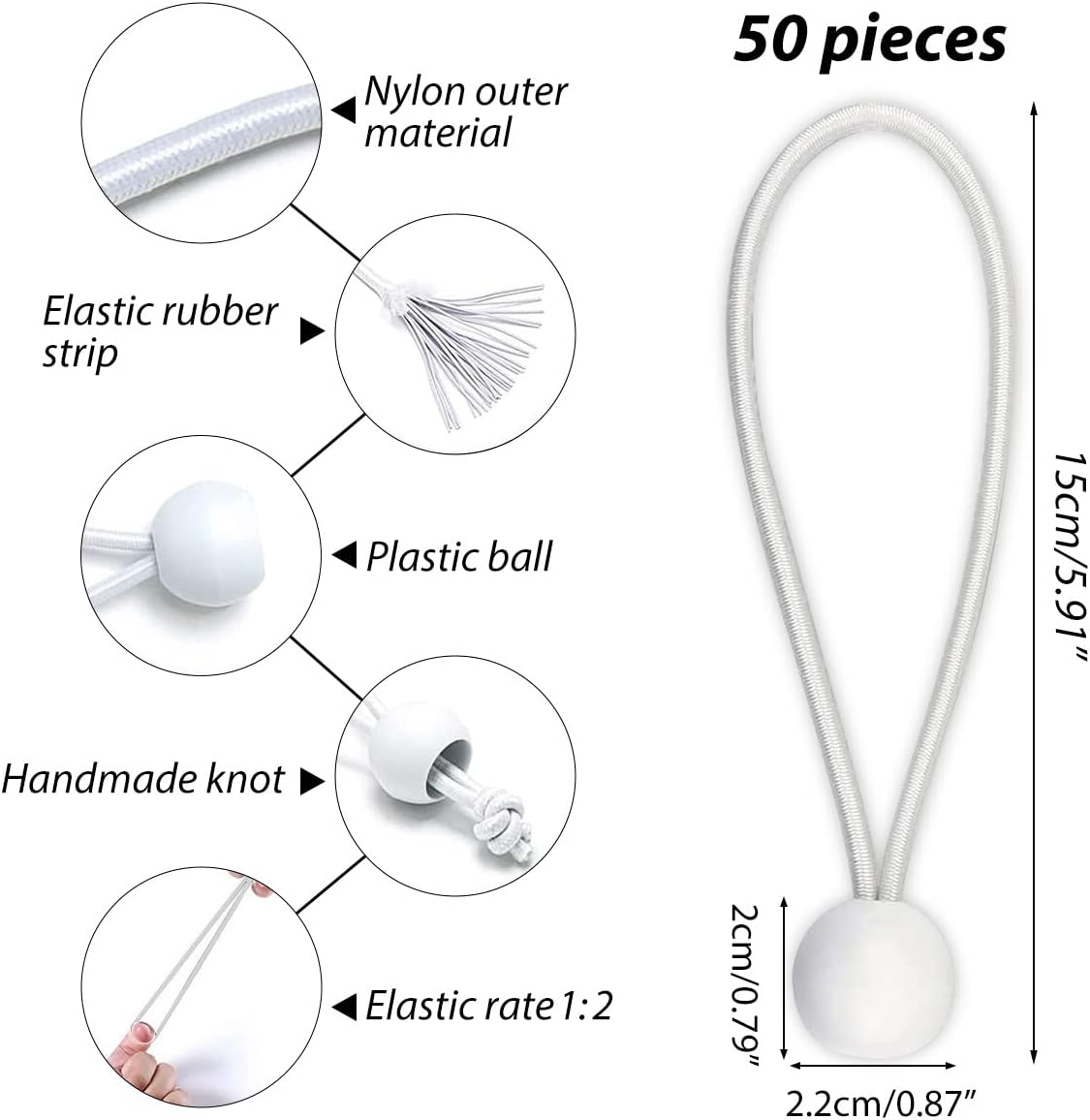 Tendeurs Elastique Avec Crochets Tendeur Cable Gentpovth Lot De 50 Tendeurs Élastiques Avec Boules Corde Elastique Matériau : les clips de bâche sont en caoutchouc et en plastique avec une excellente élasticité et élasticité. Rapide et facile à installer, sans outils supplémentaires. Caractéristiques : Longueur : 12 cm - Diamètre de la boule : 2,5 cm - Diamètre du cordon élastique : 5 mm. Nous vous proposons un choix varié d Pas facile à casser ou à éclater. Fil de polypropylène très résistant. Anti-âge, longue durée de vie. La balle de 2,5 cm de diamètre assure une tension constante et une prise ferme., Haute ductilité. Facile à utiliser : tirez le tendeur à travers l'œillet puis jetez-le à nouveau sur la boule et la bâche est tendue. Multi-usage Largement utilisé pour fixer la bâche étanche des tentes de garage et des entrepôts. Peut être utilisé dans des piles Quantité suffisante pour répondre à vos besoins. Ces tendeurs élastiques avec boule sont parfaits ! En lot de 50, ils mesurent 15 cm mais peuvent s'étirer jusqu'à 30 cm - hyper élastiques. La boule en... Largement utilisé dans la vie quotidienne. Lot de 50 tendeurs en caoutchouc avec boule. 5 mm de diamètre, fil polypropylène haute résistance qui offre une résistance à l'abrasion, une résistance aux UV et une grande résistance à la traction. Ductilité : 12 cm de longueur en état naturel, peut être facilement étiré jusqu'à 20 cm. Lot De Tendeurs Frefgikty Lot De 50 Tendeurs élastiques Avec Tête sphérique en polypropylène. Largement utilisé pour le camping en plein air.
