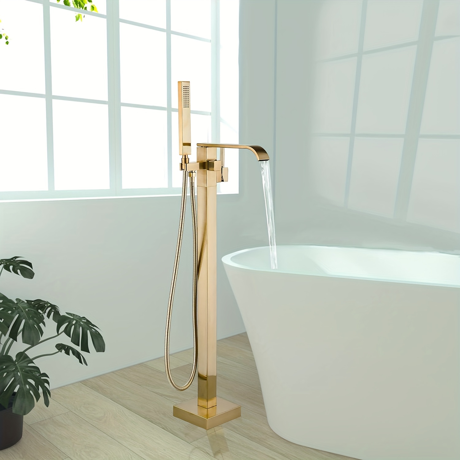Le robinet de baignoire avec débit d'eau élevé de 6 GPM peut non seulement remplir votre baignoire rapidement, mais peut également vous apporter une excellente expérience de bain. Méthode d'installation : montage au sol. La poignée à levier unique vous permet de contrôler sans effort la température et le débit. Tuyau de douche : acier inoxydable. Robinet De Baignoire Autoportant, Robinet De Remplissage De Baignoire Noir, Robinets De Bain Autoportants En Laiton Avec Douchette Et Bec Pi 90157013 Caractéristiques du produit : Nom du produit : robinet de baignoire autoportant. Le robinet de baignoire autoportant VEVOR élégant et durable offre un bec pivotant à 360 °, un débit élevé et une douche à main flexible pour une expérience de bain luxueuse. Le robinet de baignoire autoportant est fabriqué en laiton massif, très durable et fiable. Matériau du corps : laiton., Finition : nickel brossé. Débit : max 6 GPM (bec de baignoire) ; 2,5 GPM (douche) Bonne qualité : les pièces de fixation du robinet sont en laiton de haute qualité. La vanne à disque en céramique est soumise à 500 000 tests d'ouverture et de fermeture pour garantir un fonctionnement durable La surface adopte la technologie de galvanoplastie multicouche, ce qui rend la surface lumineuse et lisse, belle et durable. Robinet de baignoire autoportant en nickel brossé - Salle de bain au sol avec bec pivotant à 360 degrés, douche à main et poignée simple pour robinet de... Longueur du tuyau de douche : 150 cm. 【Facile à utiliser】Deux modes de fonctionnement : bec de remplissage cascade et douchette à main, peut facilement être commuté par le bouton de valve de déviation. Le tuyau de douche en acier inoxydable de 150 cm est parfait pour une douche complète ou pour rincer rapidement la baignoire après le lavage. Robinet De Baignoire Autoportant En Nickel Brossé Avec Système De Douche Deux modes de fonctionnement : bec de remplissage cascade et douchette à main, peut facilement être commuté via le bouton de valve de déviation.
