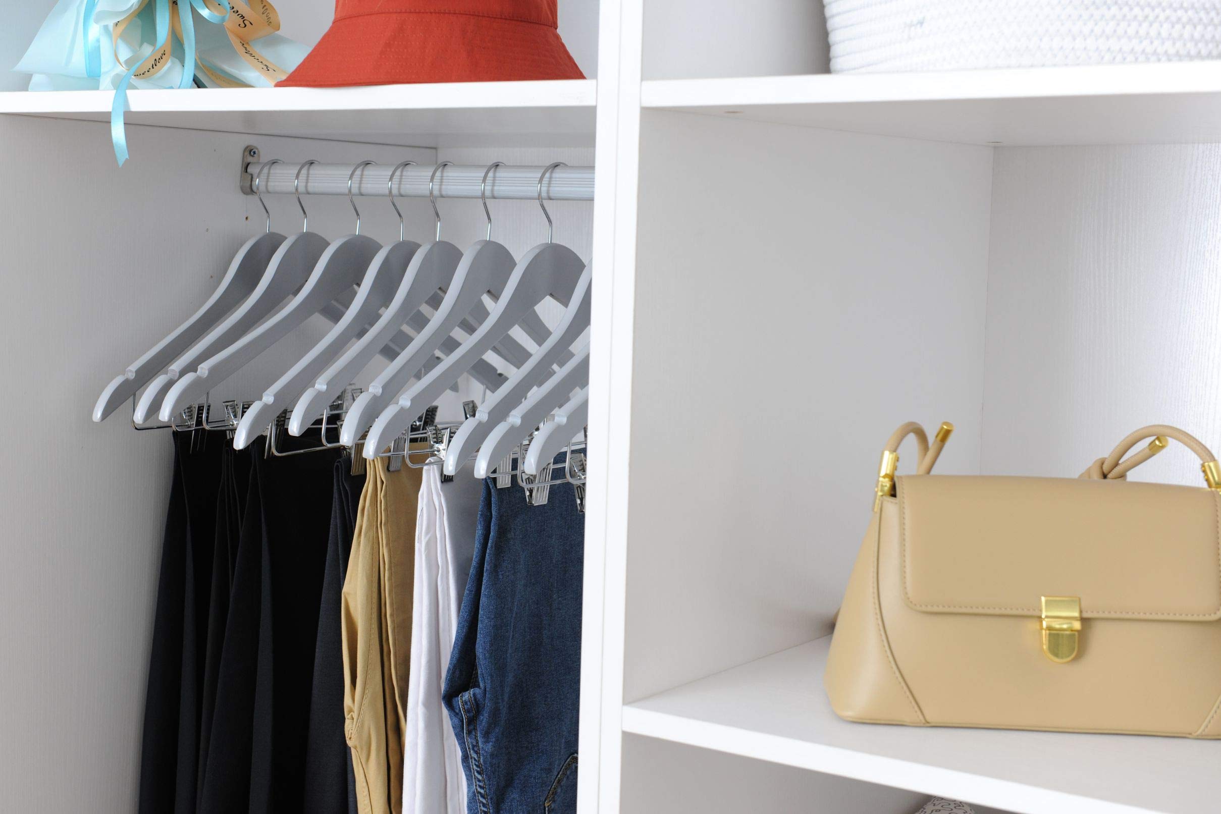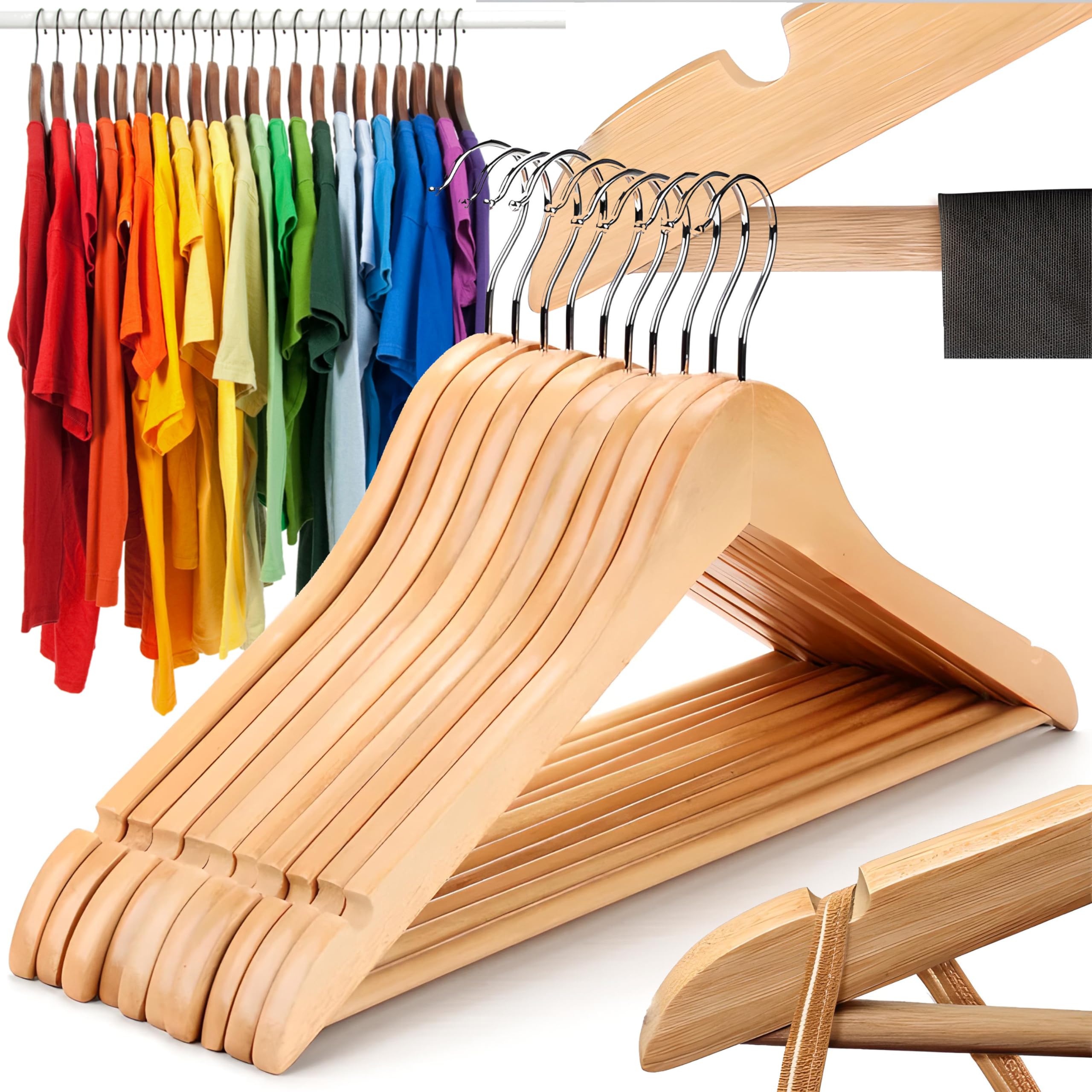 HOUSE DAY Lot De 10 Cintres En Bois Massif Avec Surface Lisse, Crochet Rotatif à 360° Et Rainures D'épaule, Cintres En Bois Solide Pour Costumes, Chemises, Vestes Et Manteaux - Noyer