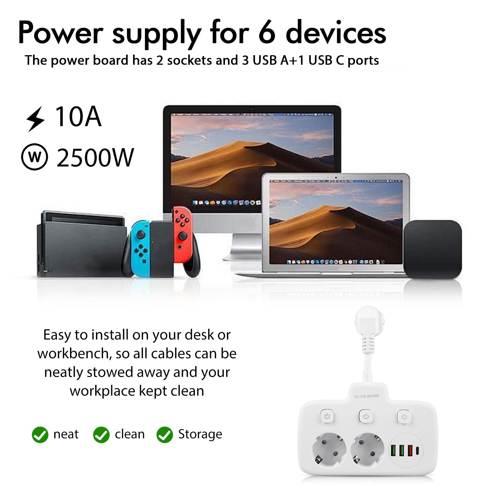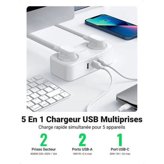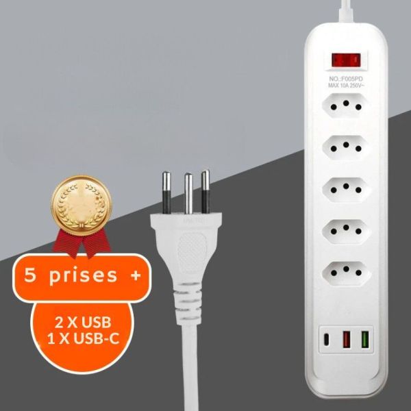 Puissance jusqu'à 2500 W (max., 250 V, 10 A. La multiprise est tr s flexible et compacte. ) Sortie USB : 5 V/2,4 A., Tension : 220 ~ 250 V, 50/60 Hz. Aucune installation n cessaire, plug and play, parfait pour charger vos appareils en voyage ou en vacances. Matériau : ABS/PC/cuivre., Couleur : blanc. Aucune installation nécessaire, il suffit de brancher et d'utiliser. Spécification : Nom : multiprise 2 prises. Peut être utilisé dans n'importe quel intérieur, en particulier dans les chambres, salles de bains, cuisines et chambres. Aucune installation nécessaire, plug and play, parfait pour charger vos appareils en voyage ou en vacances. Elle permet de connecter jusqu'à 5 appareils simultanément sur une seule prise, dont 2 via des ports USB. Adaptée à tous types de pièces comme la cuisine, le bureau ou la chambre, elle peut être installée en tant que multiprise murale ou bloc multiprise Multiprise 6 en 1 : la multiprise dispose de 2 prises de courant et de 3 ports USB A + 1 USB C qui peuvent alimenter 6 appareils en même temps. Multiprise 6 en 1 la multiprise dispose de 2 prises de courant et de 3 ports USB A + 1 USB C qui peuvent alimenter 6 appareils en m me temps. La multiprise dispose d'une protection contre les surtensions et les surintensités, de sorte qu'en cas de court-circuit, elle ne brûlera pas et n'endommagera pas vos appareils connectés. Triplette Obut SPORWAY Multiprise 2 Prises 2 Prises Avec 3 Ports USB Et 1 Multiprise 10 Prises Remarque la capacit de charge maximale du c ble est de 5 kg. La multiprise est très flexible et compacte. Remarque : la capacité de charge maximale du câble est de 5 kg. Multiprise Hugo! Blanche, 7 Prises 2 Prises USB, avec parasurtenseur Multiprise de qualité supérieure avec câble extra épais de 2 m en blanc classique. Prise de distribution puissante de 2500 W : pour alimenter plusieurs appareils en même temps, il est parfait pour charger la plupart des appareils de bureau et ménagers, tels que les ordinateurs, l'audio Bluetooth, les humidificateurs, les machines à café