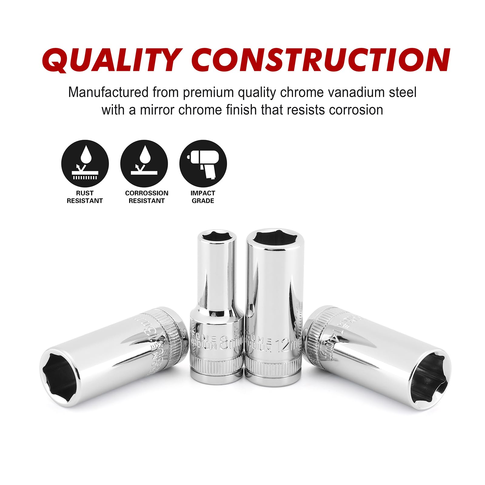 CASOMAN Lot De 14 Douilles Mi-longues 3/8" 6 Pt, Métriques, 6, 7, 8, 9