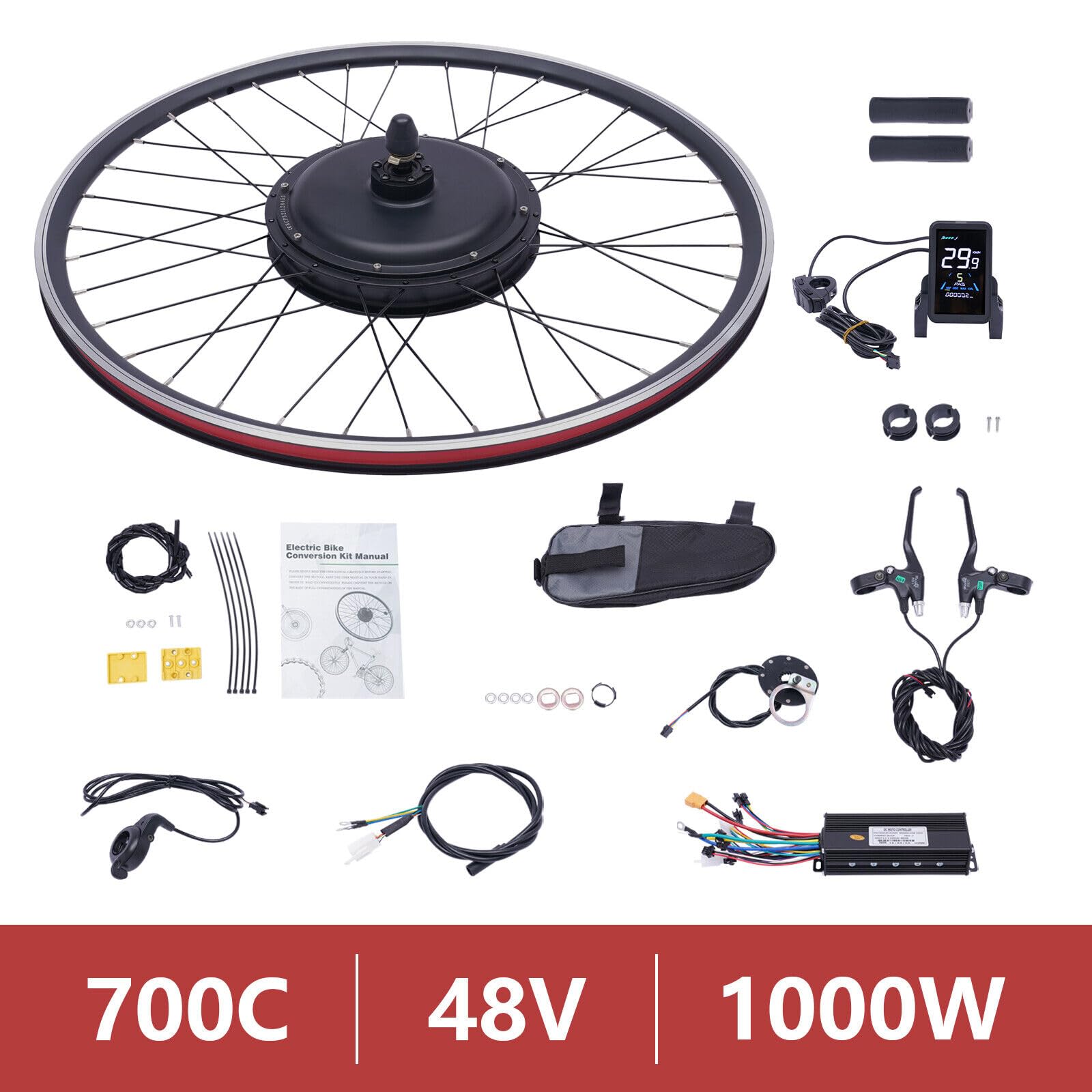 1 levier de frein d'arrêt., 1 sac pour manette. Haute performance : ce kit de conversion de roue arrière Ebike est équipé d'un moteur à engrenages sans balais et sans dents de 1500 W, qui est puissant et peut réduire le bruit. Tension de sortie : 48 V., Puissance : 1500 W. Diamètre des roues : 633 mm. Largeur des roues : 135 mm. 1 boîtier de commande., 1 écran LCD., 1 papillon ordinaire. Matériau de qualité supérieure : le kit de conversion Ebike de 28 est fabriqué en aluminium de qualité supérieure, solide et durable. Cela vous fera économiser beaucoup d'efforts et de nerfs. Caractéristique spéciale : électrique , Tension : 220 V Contenu de la livraison : 1 moto. Kit Conversion Velo Electrique Kit De Conversion De Vélo électrique, Roue à Vélos Arrière 48 V Kit De Conversion De Moteur à Vélo électrique Avec écran LCD, Jeu De Moteur De Moyeu Kit Roue électrique Vitesse de rotation : 500 tr/min., Couple : 50 N., M En plus du guidon normal, il y a également une poignée de frein désactivable qui vous offre une double garantie de sécurité. Le kit de conversion est composé d'un capteur de haute qualité et de poignées de frein à haute sensibilité pour protéger votre conduite. Vitesse du moteur : 55 km/h., Poids brut : 12,5 kg., Poids net : 11,5 kg. Deux types de barres de direction : ce kit de vélo est livré avec deux types de guidons. Les mesures étant prises à la main, les tailles indiquées peuvent varier de 1 à 3 cm., 3., Ce kit ne contient pas de pneus et doit être acheté par le client. Fonctions polyvalentes : ce produit dispose d'un circuit réglable à cinq vitesses et d'une fonction de croisière à vitesse fixe. 1 volant d'inertie à 7 vitesses. La taille de pneu appropriée est de 700 x 32-42 c/28 x 13/8. Fafeicy Kit de Conversion de Roue Arrière pour Vélo Électrique 48V 250W Hub Motor Controller LCD... Kit de conversion pour vélo électrique - Kit de conversion pour vélo électrique 36 V 500 W 28 1 capteur d'assistance au pédale. Caractéristiques techniques : Matériau de la roue : aluminium , Couleur : noir.