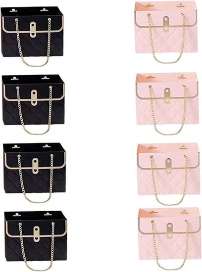 Sacs Cadeaux en Papier de Fleurs 6 PCS 3 Couleurs, Mini Boîte Sac Bouquet avec Poignée Chaîne en Métal pour la Décoration de Fête d'anniversaire Caractéristiques : 1., Matériau Durable - Cette tourbière cadeau en papier présente des caractéristiques de bonne capacité portante et de texture, imperméable, réutilisable, ce qui est très respectueux de l'environnement., 2., Sac de Bouquet de Mode - Notre sac cadeau de fleurs en papier utilise un design à la mode et novateur, qui peut parfaitement correspondre à vos bouquets et cadeaux, les rendant plus uniques et plus beaux, et parfaitement assortis à votre cœur et à votre cadeau ou à votre fleur., 3., Espace de Stockage - La taille du sac de bouquet est d'environ 15 × 10,5 cm, assez grand pour vous permettre de bricoler votre sac cadeau à volonté, rendant votre cadeau plus attrayant., 4., Large Application – Nos sacs à bouquets sont des décorations élégantes et pratiques, adaptées à l'emballage de bouquets noués à la main, de petites compositions florales, de petits cosmétiques, de cadeaux d'anniversaire et de vacances, etc., 5., Couleur en Option - Nous avons 3 couleurs différentes, rose, blanc, noir, adaptées pour emballer des bouquets noués à la main, de petites compositions florales, des cadeaux floraux ou d'autres petits cadeaux. Joyeux anniversaire bouquet roses rouges vecteur. Boîte cadeau floral... 【Design de Mode】Le sac cadeau fleuri adopte un design rectangulaire et est équipé d'une chaîne en métal. Box Fleur Mango - Sac Porté épaule Rond Avec Poignée En Chaîne Argentée - Blanc Emballage Saint Valentin 【Large Application】Avec un design tendance et un look novateur, les sacs cadeaux floraux sont largement utilisés pour une variété d'occasions, telles que les mariages, les arrangements, les fêtes prénuptiales, la fête des mères, les fêtes prénatales, les anniversaires, Thanksgiving, l'obtention d'un diplôme, etc. Télécharger Boîte-cadeau décorative avec motifs floraux Pages de... B04 -Boîte à fleurs en papier Kraft avec poignée,sac de transport pour 【Sacs de Bouquet de Fleurs élégants】Le panier d'emballage de bouquet est imprimé avec de beaux motifs et la poignée est faite de chaînes en métal, ce qui le rend plus beau et exquis, rendant votre cadeau plus attrayant. Spécifications : Nom de l'article : Boîte en Papier à Fleurs Matériel : Papier / Métal Couleur : rose/blanc/noir Taille de la Boîte en Papier : 15 x 10,5 x 10 cm / 5,9 x 4,1 x 3,9 pouces Longueur de la Chaîne en Métal : 31 cm / 12,2 pouces Forfait : 6 x Sacs Cadeaux en Papier de Fleurs