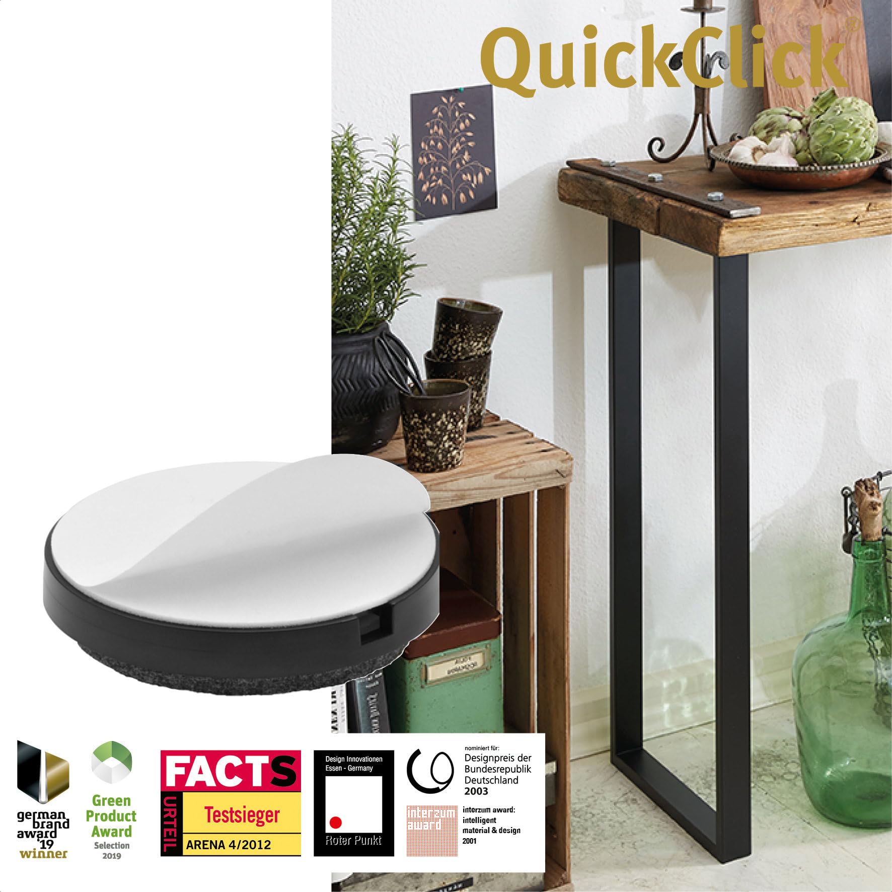 Remplacez l'insert QuickClick lorsque le sol est changé ou usé - sans outils spéciaux. Système intelligent de parquet : pas de perçage, de collage ou de clouage permanent, le système Quick Click de Wagner est monté en une seule fois A encliqueter dans une pièce de base correspondante en plastique de haute qualité. Wagner QuickClick® Patins En Feutre Pour Meubles Et Chaises - Lot De 4 à Visser I 4X Base Vis Insert Changeable - Feutre De Laine Ultrasoft - Diamètre 17 Les meubles et les sols sont ainsi protégés - de manière permanente ! Système breveté QuickClick : pièce de base à coller avec insert coulissant interchangeable Jeu complet pour une chaise (pied de chaise : ø 50 mm) 100% qualité fabricant - Fabriqué en Allemagne Avec insert de glissement ULTRASOFT en feutre de laine douce duveteuse pour tous les sols sensibles Contenu de la livraison : 4 x pièce de base ø 50 mm avec tampon adhésif spécial ; 4 x insert ULTRASOFT ø 50 mm La solution intelligente : QuickClick - le premier système de glissement et d'arrêt avec des inserts interchangeables ! Ceux-ci peuvent être sélectionnés selon les besoins, encliquetés et remplacés à tout moment sans outils spéciaux. Ce système est aussi simple qu'ingénieux. Parce que QuickClick est le seul système de glissement et d'arrêt avec des inserts interchangeables. LE RÉSULTAT : WAGNER QuickClick est fabriqué en Allemagne et permet à vos meubles de glisser en douceur et sans bruit, protège et préserve votre sol et vous offre une durabilité, un confort et un maintien de valeur optimaux., Essayez-le. Gamme d'application L'insert de glissement ULTRASOFT est parfait pour tous les revêtements de sol sensibles tels que le parquet, le stratifié, le marbre ou les carreaux de céramique fine. FELTAC Patins à pression, feutre, rectangulaires, 3/4 x 7/8, 4/pq 63349 UNE DIVERSITÉ DURABLE : QuickClick est disponible dans de nombreuses versions : réglable en hauteur, avec absorbeur de bruit et de vibrations intégré, avec suspension pour une absence totale de basculement et d'oscillation, avec insert DUO, c'est-à-dire deux surfaces de glissement pour tourner, en extra-large, tiny-small ou super-plat. Equipez votre maison de patins de qualité supérieure QuickClick. Insert coulissant QuickClick Ultra Soft de Wagner. Matériau : Le tapis de glisse ULTRASOFT est fabriqué en feutre de laine doux et très silencieux, qui protège... DE PREMIÈRE CLASSE ET UNIQUE : Développé à l'origine pour l'industrie, QuickClick est utilisé et recommandé par des fabricants de meubles et de mobilier design de renommée mondiale et de premier plan. C'est pourquoi il existe un insert de glissement adapté à chaque revêtement de sol : vous choisissez les inserts QuickClick en feutre de laine doux et duveteux pour tous les sols très sensibles ; les inserts en feutre naturel est très résistant à l'abrasion ; pour toutes les surfaces souples, choisissez les inserts en plastique spécial extrêmement résistant au glissement. De quels inserts de glissement QuickClick avez-vous besoin ? Notre pari : vous ne voudrez plus jamais vous en passer.