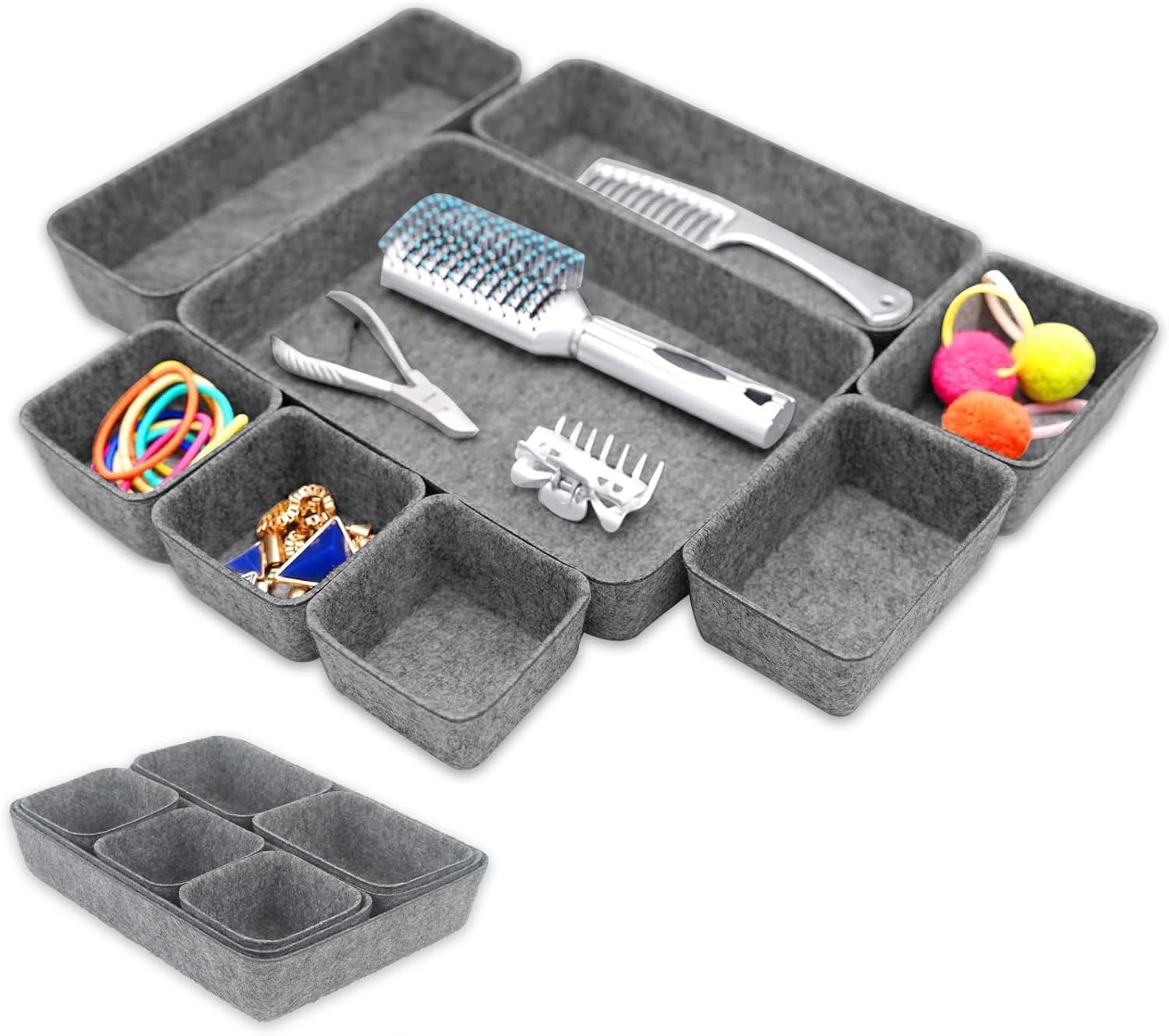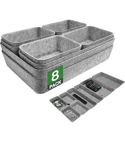 Ils sont durables et indéformables et ne se cassent pas même après une utilisation prolongée. Qu'il s'agisse d'une ambiance moderne, minimaliste scandinave, fraîche ou rétro élégante, elle peut être un accent harmonieux à cette pièce, qui répond aux besoins de stockage pratiques en même temps, met en valeur votre goût unique et vos exigences esthétiques, améliorant le degré général et la texture de la pièce. Nos 5 Meilleures Lot De 8 Organiseurs en France - Novembre Créez vos propres tiroirs : avec l'organiseur de tiroir, vous pouvez enfin organiser vos tiroirs de manière systématique et claire. Couleur : lot de 8, gris clair. Conteneurs multi-usages : cet ensemble d'organisateurs de bureau est disponible en différentes tailles et convient à l'organisation des tiroirs. Utilisations spécifiques pour les produits de douche, bijoux, papeterie., Matériau : feutre. Les différentes tailles vous permettent d'utiliser au mieux l'espace disponible et vous aident à trouver facilement des choses. Fourrure de qualité supérieure : nos feutres d'organisation de tiroirs sont fabriqués à partir de fibres 100 % polyester, pressées à froid, douces et flexibles pour une forme uniforme. Lot de 8 organiseurs de tiroirs améliorés : lot de 8 tiroirs de rangement en feutre et 4 tailles parfaites pour l'organisation : 1 grand panier (25,4 x 17,5 x 2,5 cm), 2 paniers moyens (25,4 x 8,5 x 3,5 cm), 3 paniers (8 x 8 x 3,5 cm) et 2 petits paniers 4,9 x 3 cm. 3 x 1,8 pouces) à plier et à placer dans le tiroir ou sur le bureau Les organisateurs de tiroirs sont la solution parfaite pour vos tiroirs. Organisateur Salle De Bain LOT DE 8 Organiseurs De Tiroirs En Feutre, Boîtes De Organisateur Tiroir Combinaison polyvalente : ce lot contient 1 grand (27 x 19 x 4,5 cm), 2 moyens (10 x 27 cm), 2 petits (10 x 13,5 cm) et 3 petits (9 x 9 cm) organiseurs de tiroirs en feutre que vous pouvez combiner librement selon vos besoins et préférences. Caractéristique spéciale : anti-rayures, anti-fissures. Apparence simple et élégante : notre organisateur de tiroir est livré dans un design minimaliste gris clair raffiné, avec des lignes claires et généreuses dans l'ensemble et des couleurs douces qui s'accordent bien avec une variété de décorations de maison et de bureau. Cet ensemble pratique de 8 classeurs vous aidera à organiser les petits objets dans vos tiroirs. Les paniers en feutre solides et durables sont durables et protègent vos tiroirs des rayures.