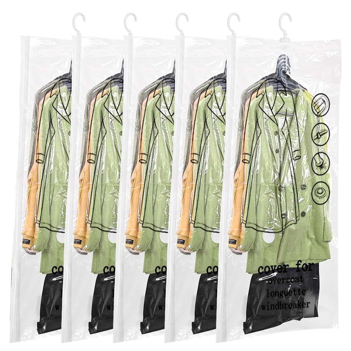Cette housse de costume pour homme peut garder vos vêtements loin de l'humidité et des cheveux, rendre vos vêtements propres et infroissables. 👍👍Fermeture éclair durable ▶️ nous avons ajouté le bouchon métallique supérieur et inférieur dans les sacs à vêtements pour le rangement de placard afin d'éviter le déraillement de la fermeture éclair. Parfait pour économiser de l'espace dans votre garde-robe, garder votre placard bien rangé et organisé. SOBEAU 8PCS Housses de Vêtements, Housses de Protection Semi Gagnez du temps pour votre emploi du temps quotidien ou vos rendez-vous importants. KEEGH Lot De 10 Sacs à Vêtements Pour Suspendre Des Vêtements De 152,4 Cm Avec Fermeture éclair Et Trou Pour Les Yeux Pour Plier Pour Costumes, Manteaux, Robes, Noir Longueur idéale pour vos costumes, manteaux, pulls et autres vêtements fantaisie que vous ne portez pas souvent. Chaque sac à vêtements est fabriqué en tissu non tissé respirant, garde vos vêtements frais et sans plis lors de vos déplacements ou stockés dans un placard. 👍👍 Respirant ▶️ Ces sacs de rangement garderont vos vêtements loin des cheveux et de l'humidité grâce à une fermeture éclair sur toute la longueur. Housses à vêtements transparentes pour suspendre les vêtements, idéales...