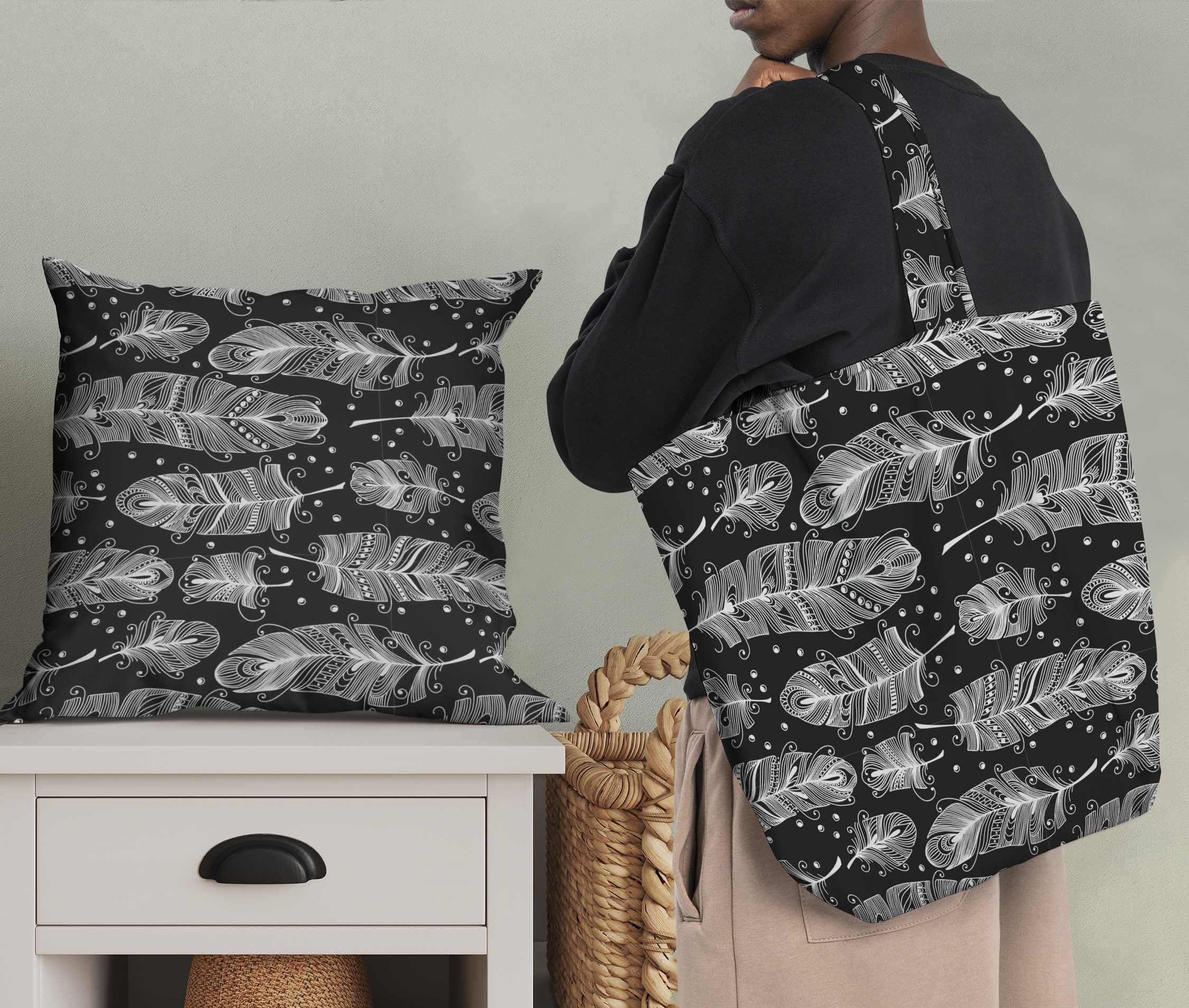 Satin Imprimer Digital Plume Bleu | Tissu Fil & Compagnie