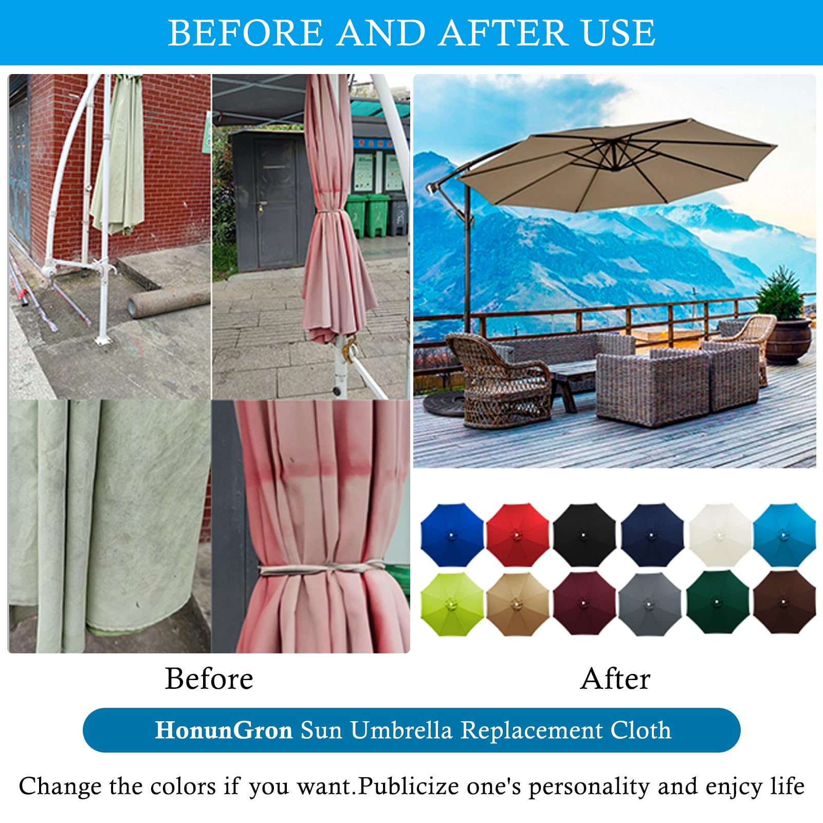 (auvent de parasol de remplacement uniquement., ) Pour acheter un nouveau parasol de jardin, remplacez simplement la toile du parasol pour donner un tout nouveau look à votre parasol déporté. (auvent de parasol de remplacement uniquement Idéal pour remplacer la toile d'origine ou tout si Vous pouvez acheter en fonction de vos besoins réels. 2 types de bras de parasol : 6 baleines/8 baleines. 【VENTILATION ET DISSIPATION DE LA CHALEUR】: La housse de parasol de jardin dispose de 6/8 poches côtelées pour correspondre au nombre de baleines de votre parasol. 【DIVERSES COULEURS ET TAILLES】Nous proposons différents types de toiles de parasol à choisir, 18 couleurs. Remarque : il n'y a que du tissu pour parapluie dans ce paquet Convient pour parasol de jardin, parasol déporté, parasol de plage, parasol de terrasse, parasol d'extérieur pour jardin, parasols en bois, en acier et en aluminium. 7 longueurs : 2 m/2,3 m/2,5 m/2,7 m/2,8 m/3 m/3,5 m. Toile Rechange Parasol Extérieur Générique Auvent De Remplacement Pour Parasol 2,0/2,3/2,5/2,7m/3 Toile De Rechange Pour Parasol CaractéristiquesNom : capote de remplacement pour parasol. Le parapluie de jardin convient à la terrasse, au balcon, au jardin, au patio, à la plage... HonunGron Auvent De Remplacement Pour Parasol 2m/2.3m/2.5m/2