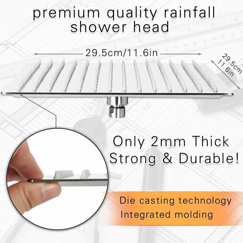 26cm Tête De Douche Pluie, YUANNY Grande Pomme De Douche Anti-Calcaire, Pommeau De Douche Economie D'Eau, Ronde Pomme De Douche Fixes, 10 Pouces Pomme De Douche Haute Pression, Noir, G1/2