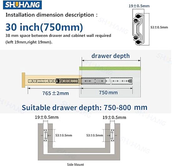 Glissière pour Tiroir SHUHANG 45kg Softclose Roulement à Billes 300 Fabriqué en acier laminé à froid Q235 avec une résistance à la traction 400 MPa. Faciles à installer : Coulisses de tiroir à montage latéral. Caractéristiques : Couleur : noir. Contenu de la livraison : 5 paires (10 pièces) de glissières de tiroir à montage latéral. Vis de montage incluses. AMI VENTURES INC. 12-17 janv. Français : Détails techniques : Roulement à billes robuste. Maintient les tiroirs coulissants en douceur même en... Protection de Serrure et Multi-Usage]Conçu avec un mousqueton, le rail peut être verrouillé ou déverrouillé par une poignée oscillante et peut être verrouillé à l'état fermé et complètement ouvert pour empêcher le glissement et assurer la sécurité de la charge. Il peut répondre à toutes sortes de besoins domestiques, tels que les glissières de tiroir grandes et lourdes, les étagères, les tiroirs industriels, les boîtes à outils, les camping - cars, les camions, etc.