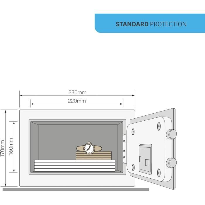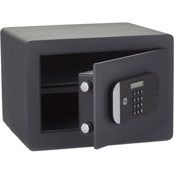 Soudures internes robustes réalisées par découpe au laser. Fonctionnement : ouverture et fermeture avec clé à double carte à 8 leviers asymétriques anti-picking oscillants et mentonet à profil spécial qui opposent une résistance exceptionnelle à la manipulation Dimensions extérieures : H270 x W390 x D200 mm. Coffre-fort Yale YSEM/520/EG1 Noir | Acheter à prix de gros Clé avec profil spécial duplicable avec carte de propriété pour empêcher la duplication non autorisée des clés. Des frappes spéciales de porte pour résister plus longtemps aux tentatives d'effraction avec batte. Grand coffre-fort privé pour garder vos affaires en sécurité avec clavier numérique. Contenu : 40 litres · Coffre intérieur : 380 x 340 x 310 mm (HxLxP) · Coffre... Épaisseur avant et porte 10 mm Ailettes d'ancrage obtenues sur les 4 côtés du fond avec fonction anti-déchirure. Haute sécurité : plaque en acier au manganèse à protection de la serrure avec système anti-manipulation. Dimensions intérieures : H245 x W365 x D150 mm Capacité : 26,9 litres · Porte découpée au laser pour une protection contre tous types d'attaque · Intérieur du coffre : crochets, doublure textile et éclairage... Arme Coffre-fort Mural De Sécurité à Clé 1 étagère L36 X H24 X P20 Cm 8a010 Coffre Fort Certification : UNI EN 14450 niveau S2., Serrure certifiée UNI EN 1300 avec clé à double carte à profil spécial duplicable avec carte de propriété, pour empêcher la duplication non autorisée des clés
