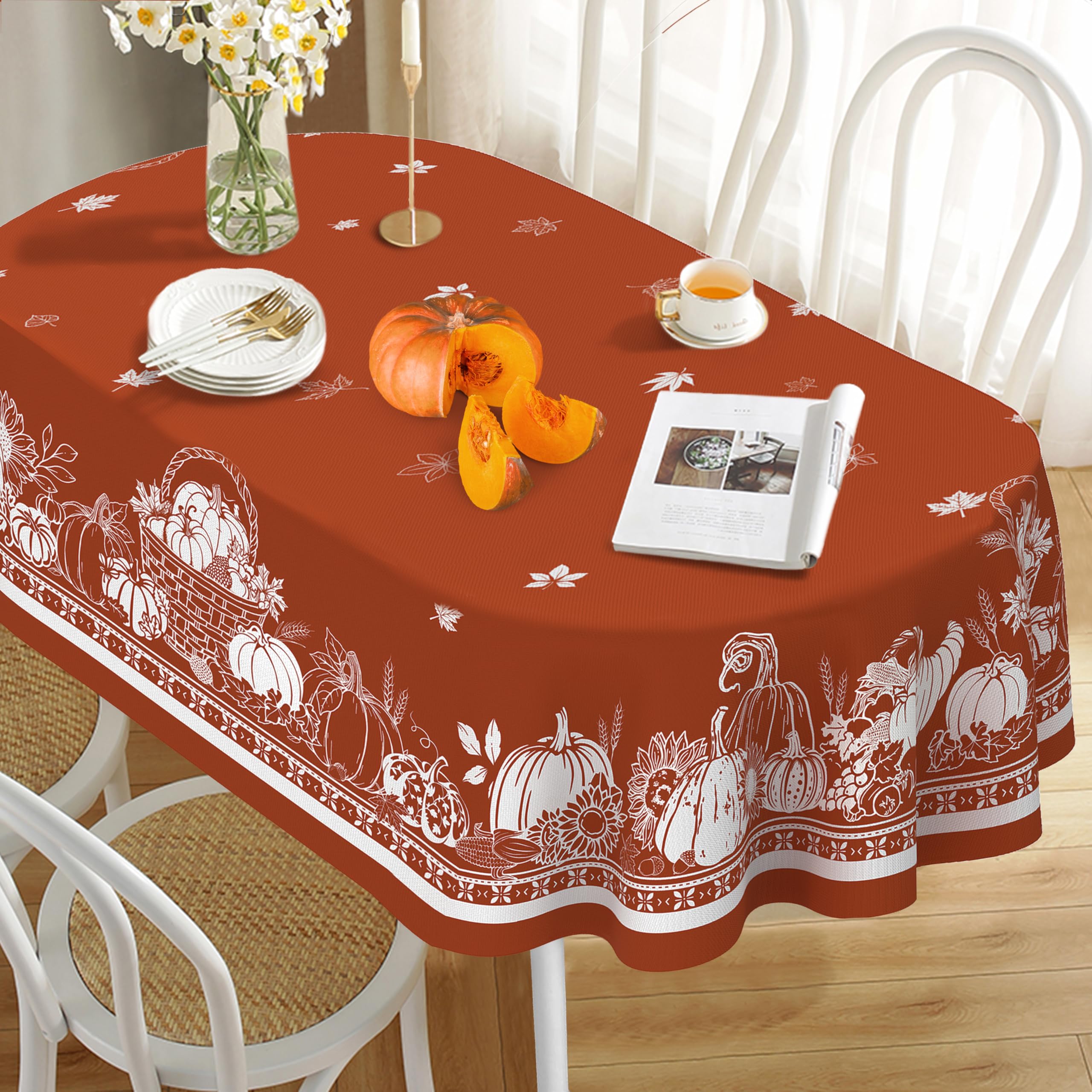 Évitez de l'utiliser à haute température ou près de flammes nues., Wrinkle Resistant Oval Fall Tablecloth,Thanksgiving Autumn Harvest Blue Pumpkin Sunflower Maple Le Horaldaily Fall Tablecloth 60 × 104 Inch Rectangular, Thanksgiving A